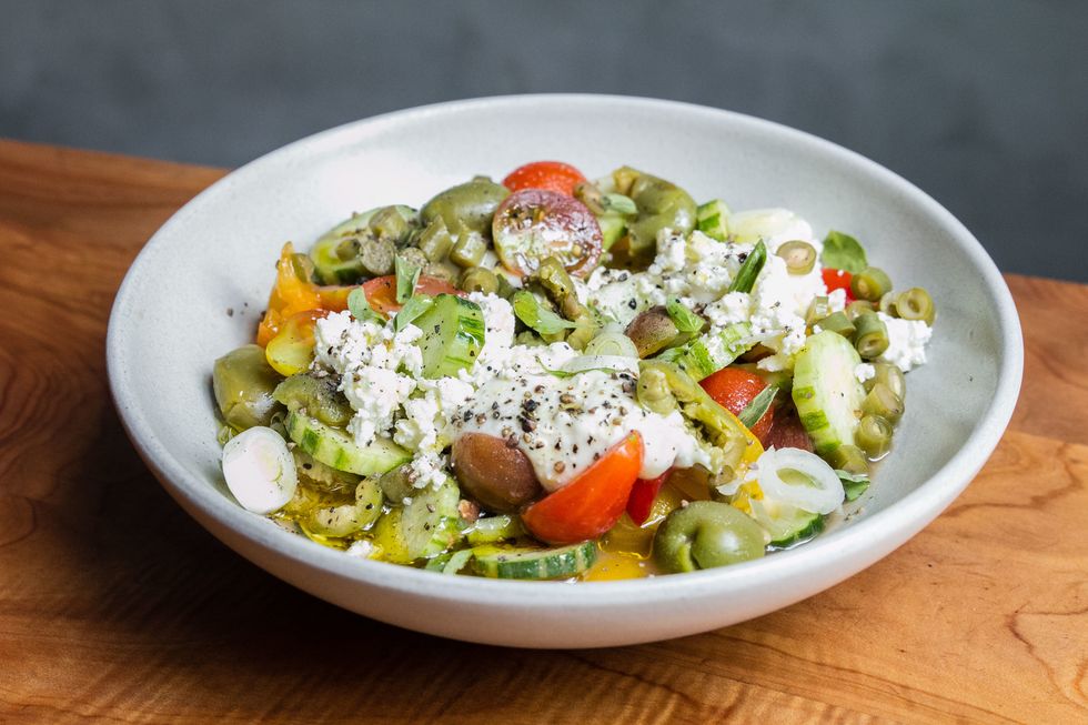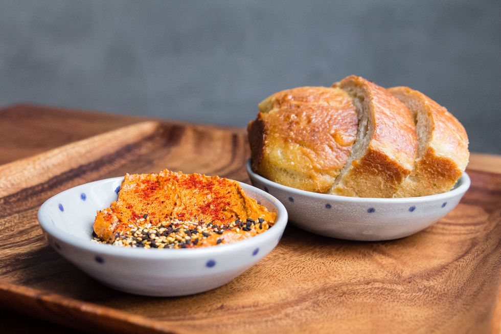 Let's start there, because obviously it's the star. At Duna, Balla turned out an exceptional smoked potato flatbread, a dish he's been tweaking over the years. His latest iteration is a soft, thick loaf, slightly buttery and salty with a hint of smokiness from the potatoes. The heft of this bread might intimidate you at first—but that's before you realize its talent for sopping up all those delicious salad juices.