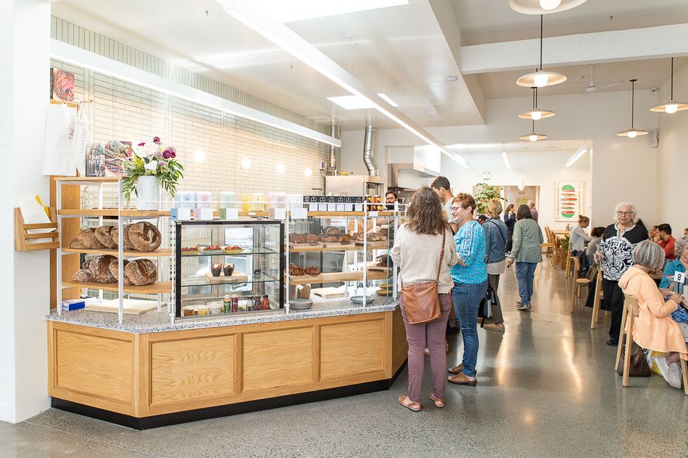 The formula at the newest Tartine Bakery is a classic one: stupid-good pastries, easy-tasty breakfast and lunch options; and a comfortable, familiar space. Like a breath of fresh ocean air, the Ninth Avenue place—designed by Studio BBA (Tartine Manufactory LA, Nico, Mister Jiu's)—is bright white, sky-lit, and bustling. An old-school garage roll-up door opens onto an outdoor courtyard; glass doors and windows welcome you in.