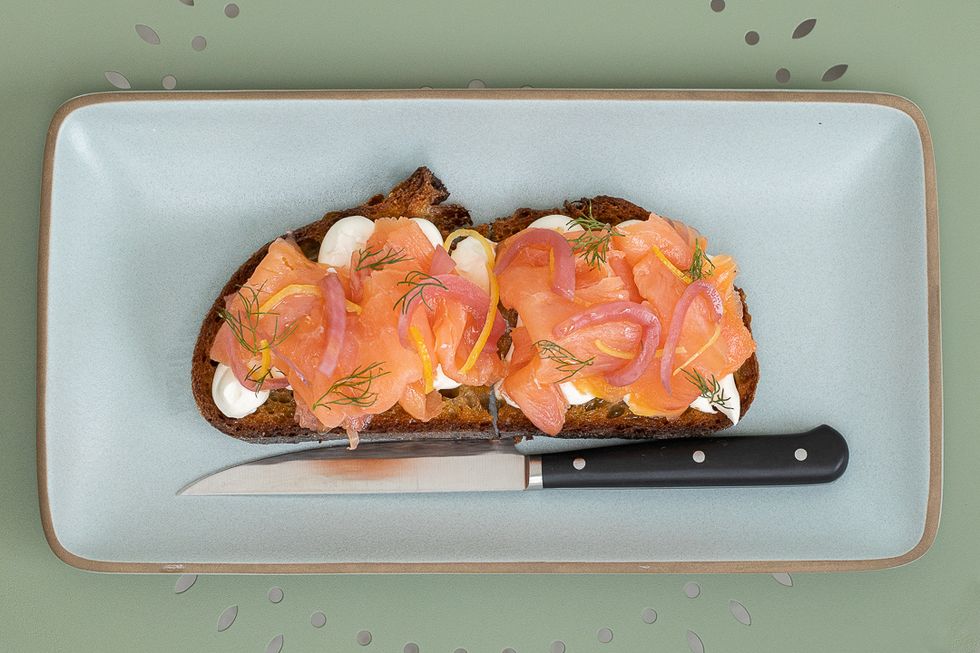 No visit to Tartine would be complete without, well, a tartine. The smoked salmon tartine is a stunner. Find a well-buttered and well-toasted piece of country bread layered with cream cheese, pickled onions, a hint of meyer lemon, and fresh springs of dill.
