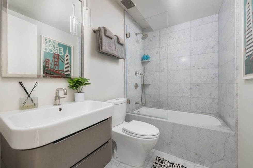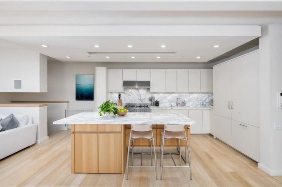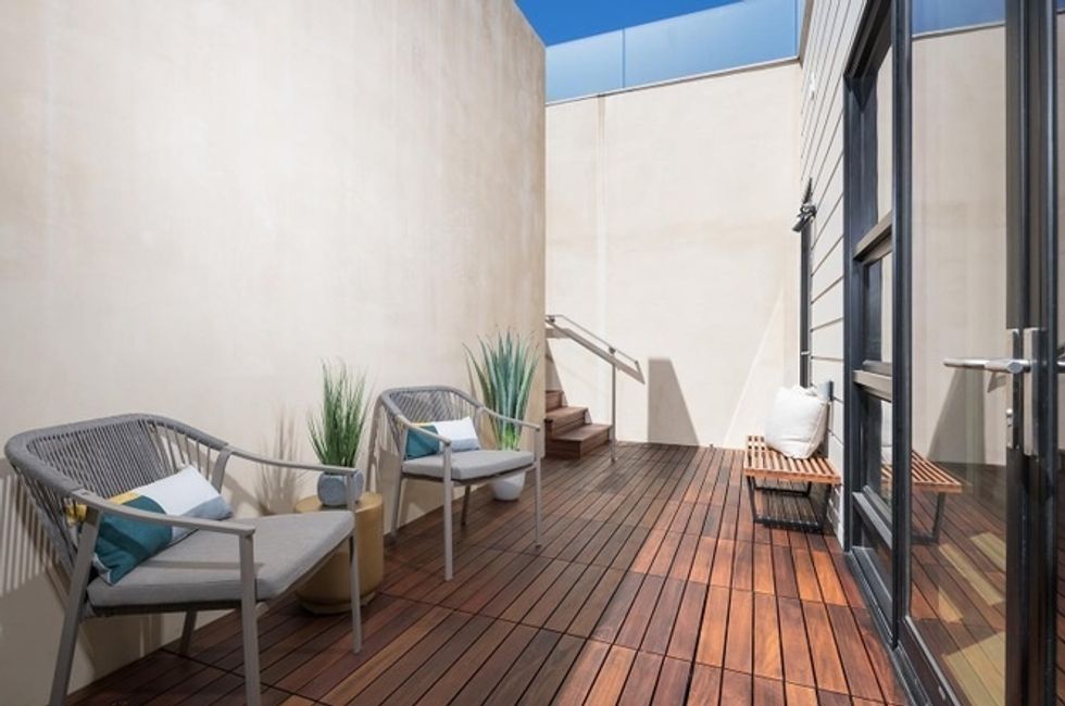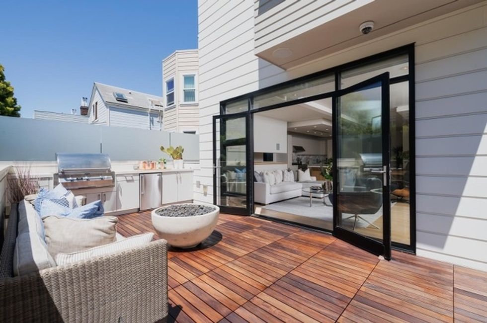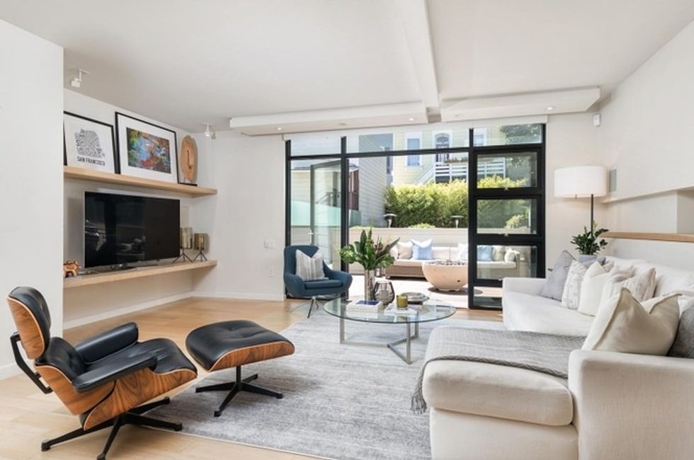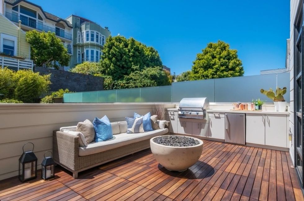 One of three units in a building near the corner of North Point and Hyde streets, the condo brings the sunshine in with a living room–adjacent terrace equipped with an outdoor kitchen and gas fire pit. When the fog rolls in, you can just close your eyes and pretend it's pretty out from inside the home's dry sauna.