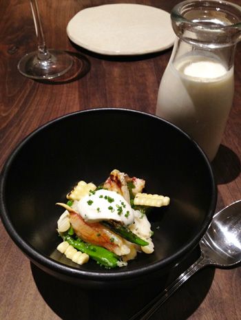 Chef Melissa Perello likes to switch up the garnish on this summer menu staple. Last week, the corn soup came with a killer topping of salmon belly, dill and creme fraiche. You'll often see it topped with fresh-picked Dungeness crab and shishito and padron peppers. "The grilled peppers lend a smokey tone, and the crab plays off the sweetness of the soup," says Perello.