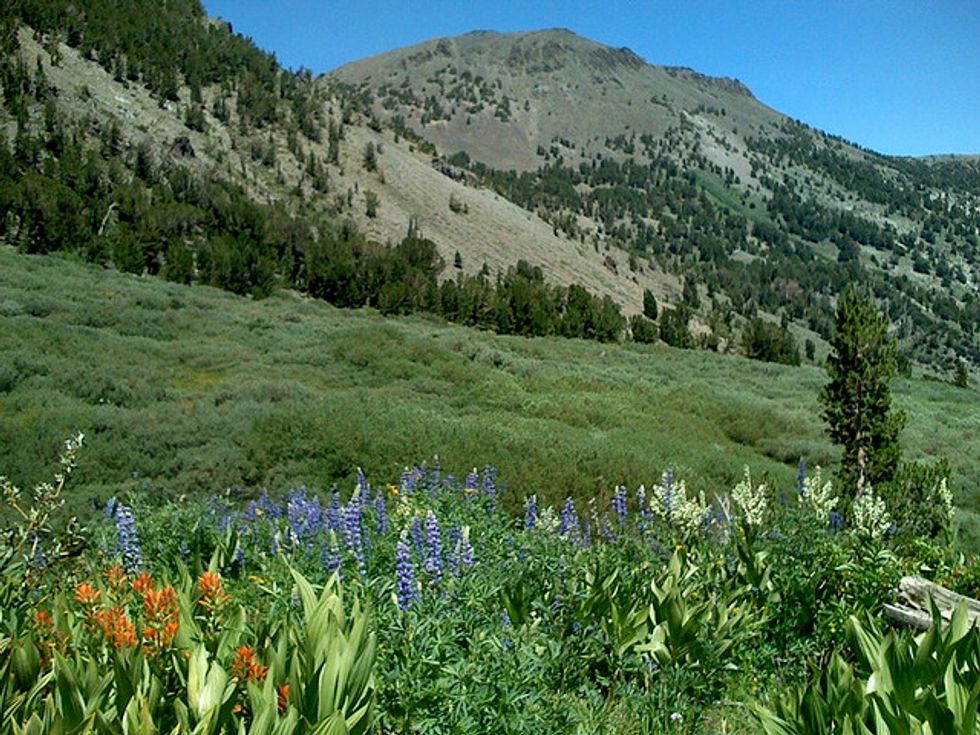 Begin this hike to two lakes from the Carson Pass trailhead off of Hwy. 88 (day fee required) and meander through pine and aspen forest on your way to Frog Lake. On the way to Winnemucca Lake you will walk through a meadow which is a garden of flowers in late spring and summer. You can also see Caples Lake from up here. Winnemucca Lake is at the top of the trail at the base of a large peak. If you don't want to pay the day fee at Carson Pass, park down the road at the Meiss Lake trailhead.