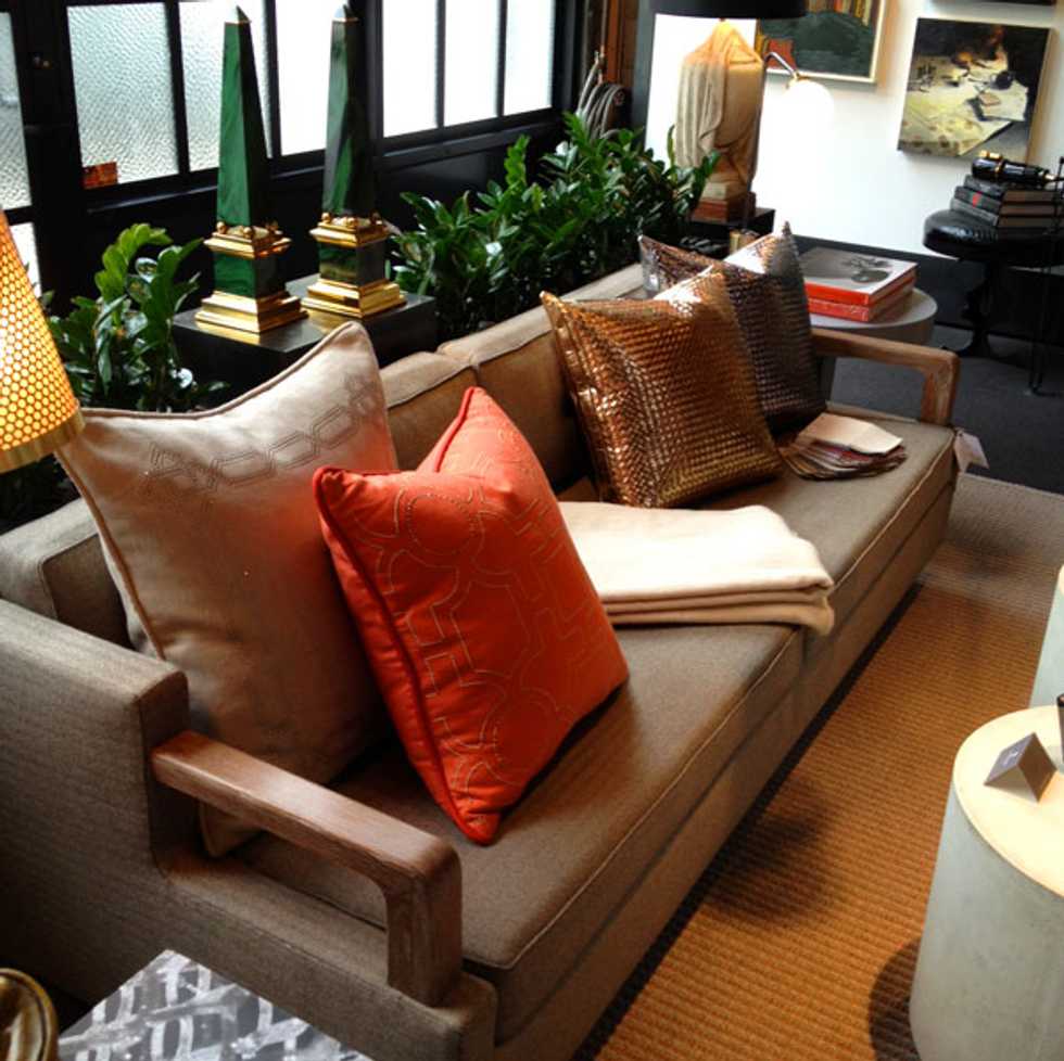 Dying to own a Jay Jeffers-designed sofa or ottoman? They are here. Check out the Kingsley (below), the sofa which, like the store, derives its name from the couple's Cavalier King Charles Spaniel. Other items to covet include beautifully embroidered ottomans.