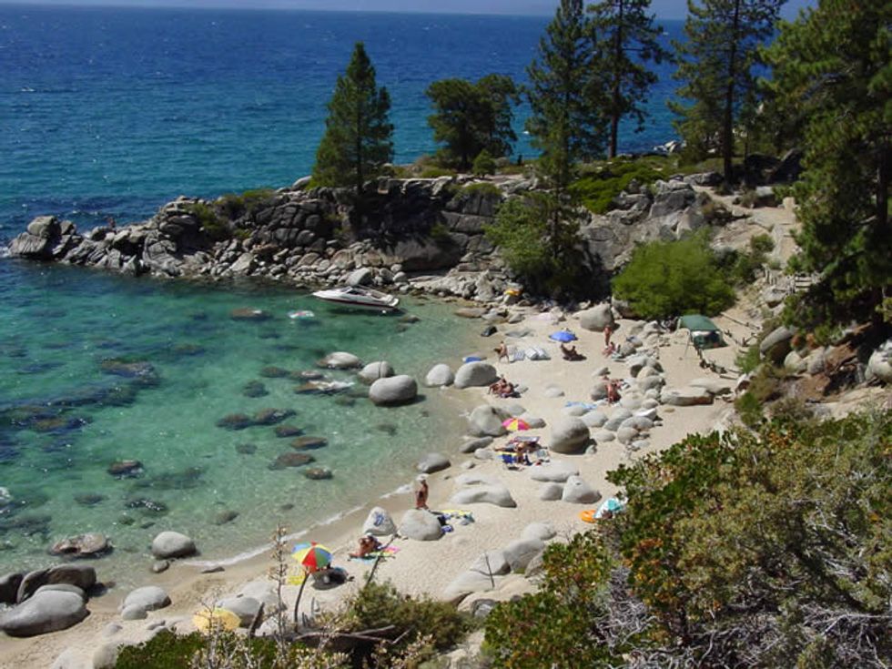 Secret Cove at Lake Tahoe is the lake's official nude beach. It's located about 3/4 of a mile south of Chimney Beach on Highway 28. There is a small parking lot and you can access the beach by walking nearly a mile down a fire access road that starts at a locked gate at the restrooms. The signs warning of nude sunbathers always cracks me up, but once you get there, you will realize why many locals want to keep Secret Cove secret. It could be one of the prettiest beaches on the lake.