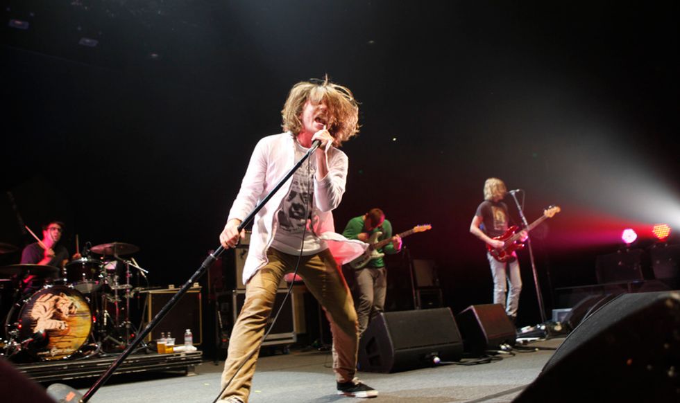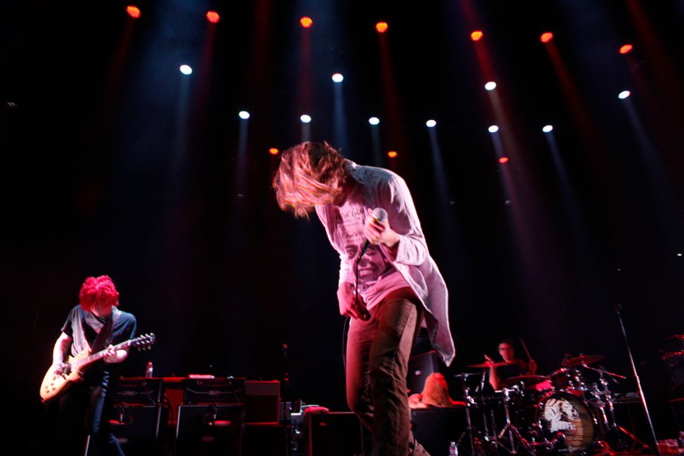 On Wednesday, he tore through the band’s biggest hits (“Monkey Wrench,” “Breakout” and even “This Is a Call,” from their eponymous 1995 debut) with the feral aggression of a man half his age (42). Once known for downing 10 shots as part of his pre-show ritual, the now “disgustingly domesticated” singer still swigs Beck’s between aural attacks, which retain their blunt force almost in spite of the band’s impossibly tight, polished sound.