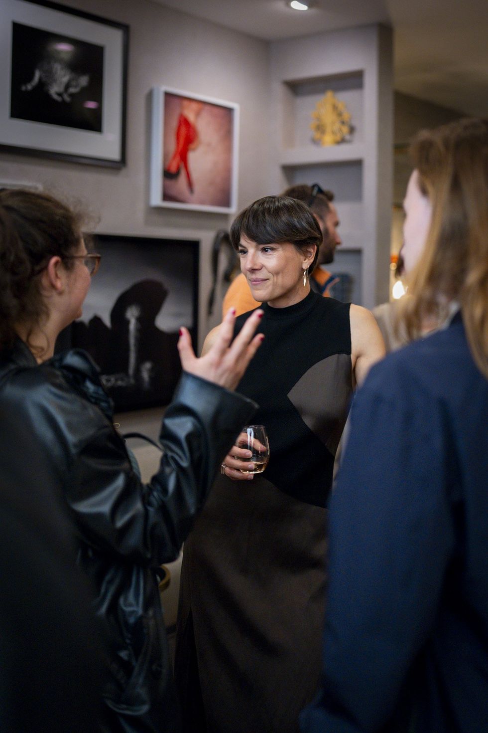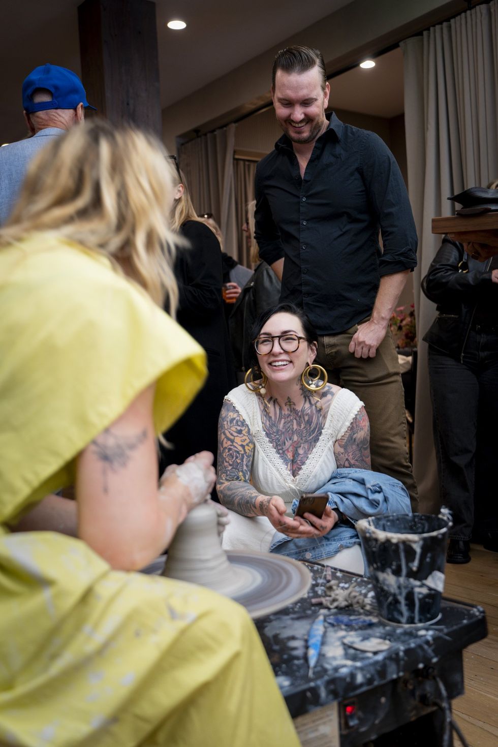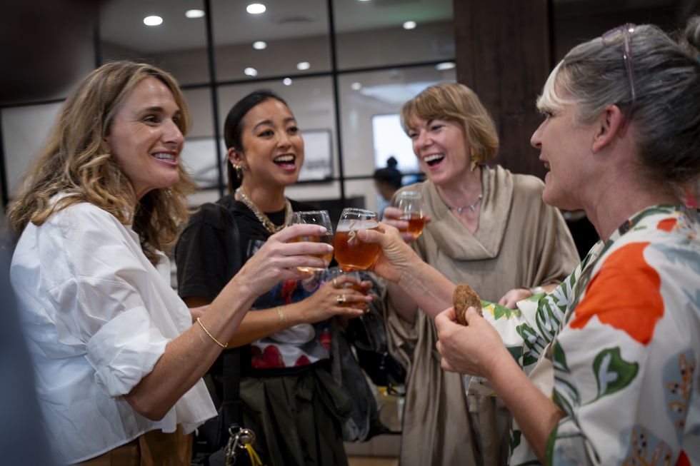 Caroline Lizarraga, who painted our interior's jaw-dropping gilded mural, and the perfumer/clairvoyant Yosh Han became fast friends, hatching plans for a future collab in color. Ayca Kilicoglu, who was chic in all black despite being loved for her colorful scarf designs, caught up with friend Jen Yeager, the new director of cultural programming at Transamerica Pyramid across the street. Interiors darling Noz Nozawa turned up repping for Martha Stewart, and the Truffle Man promised to return with treats.