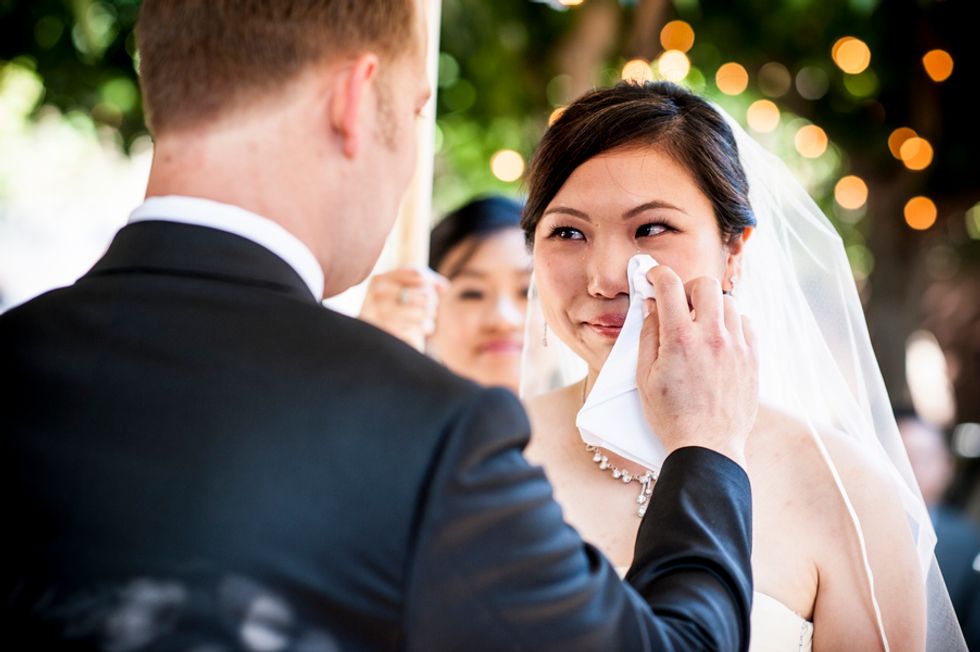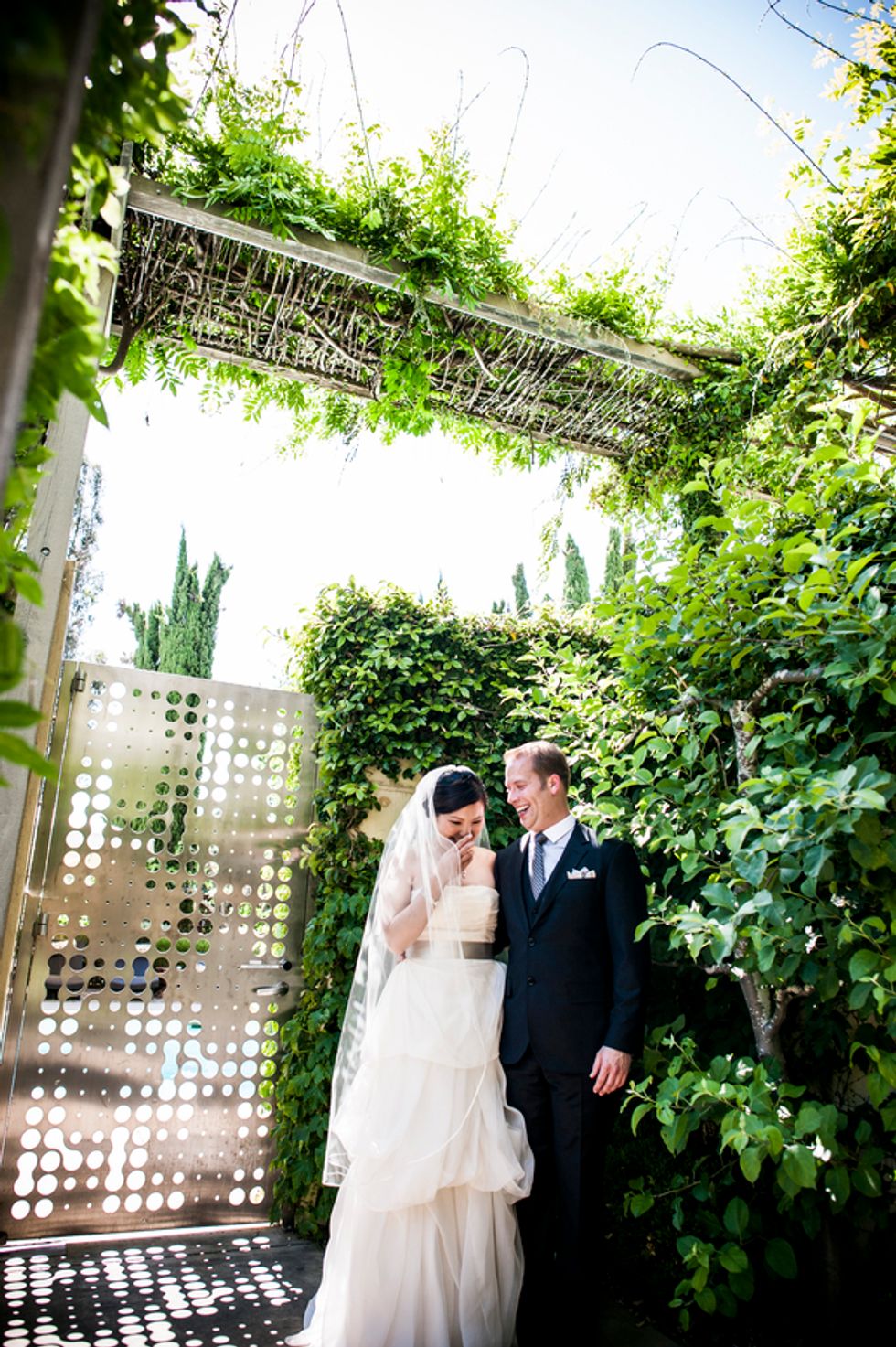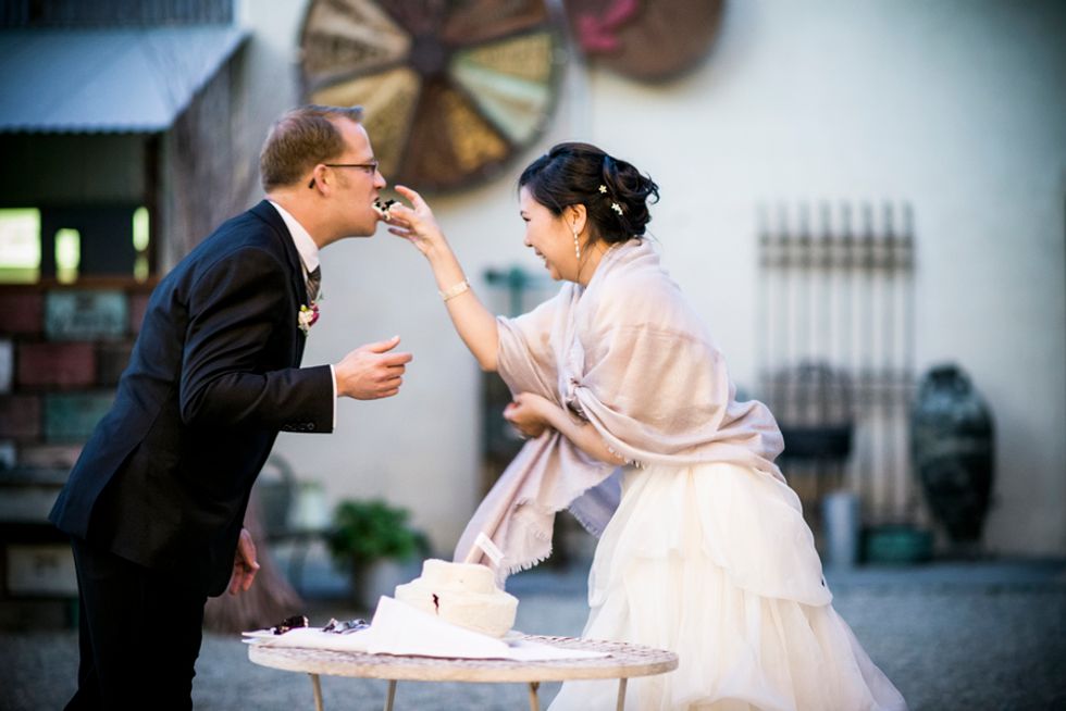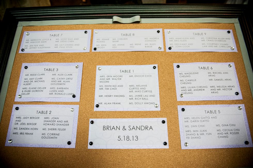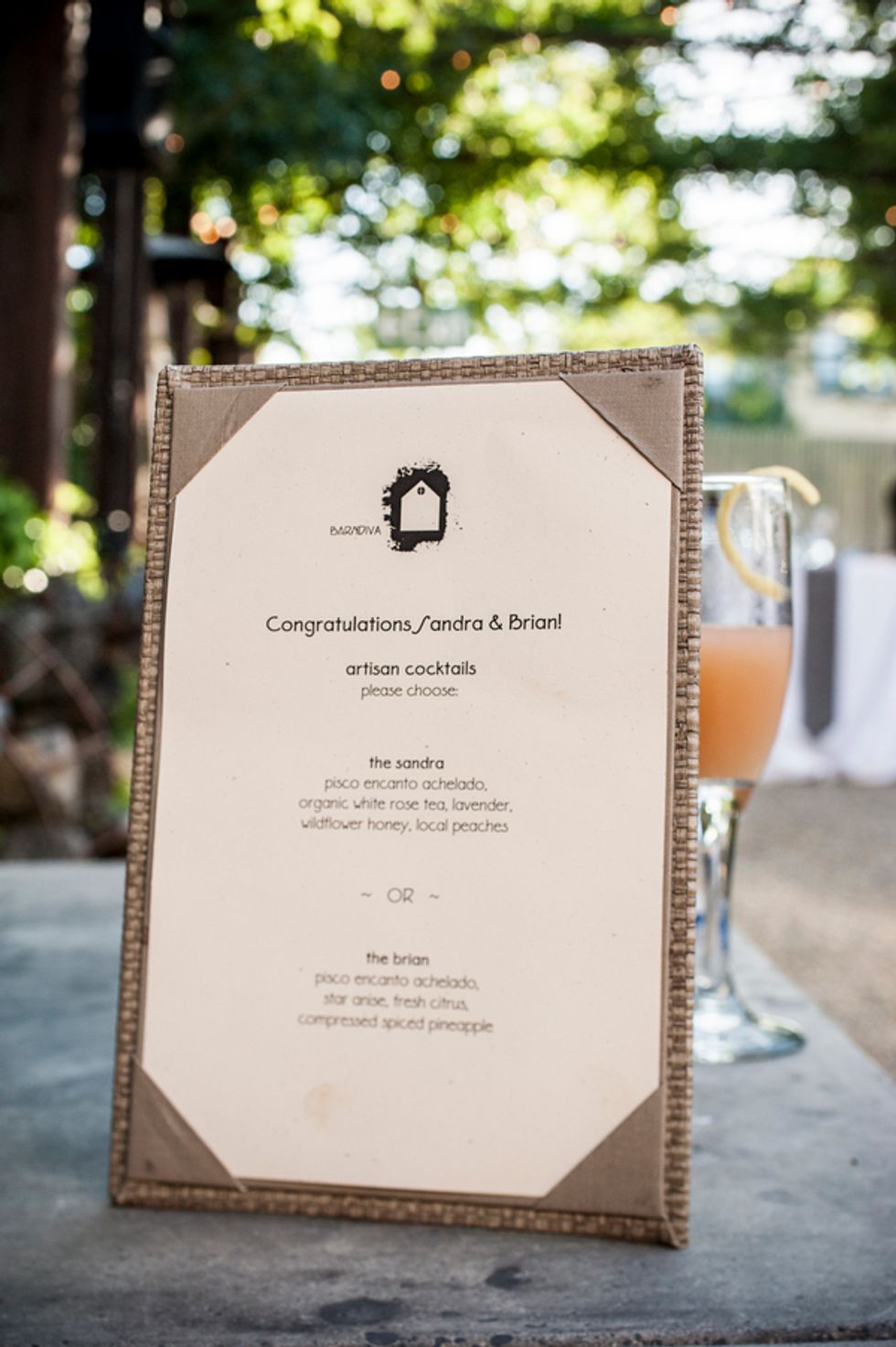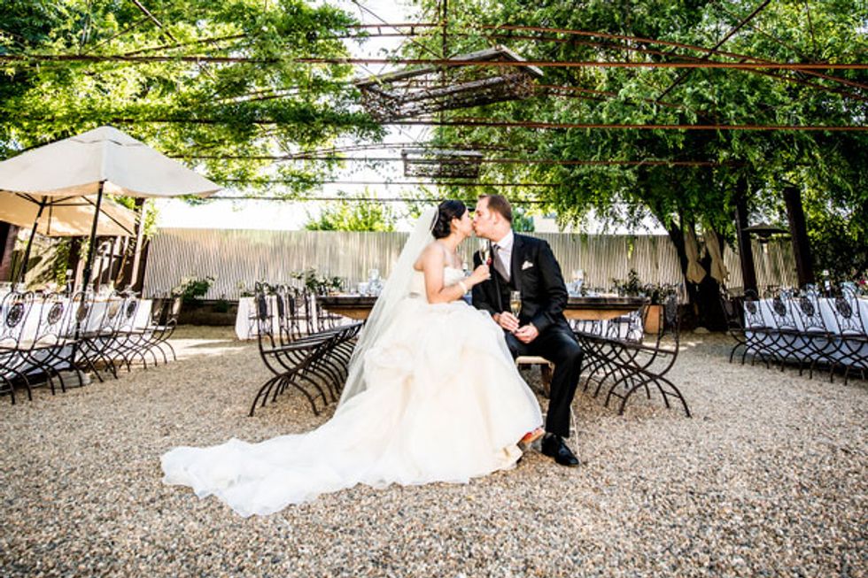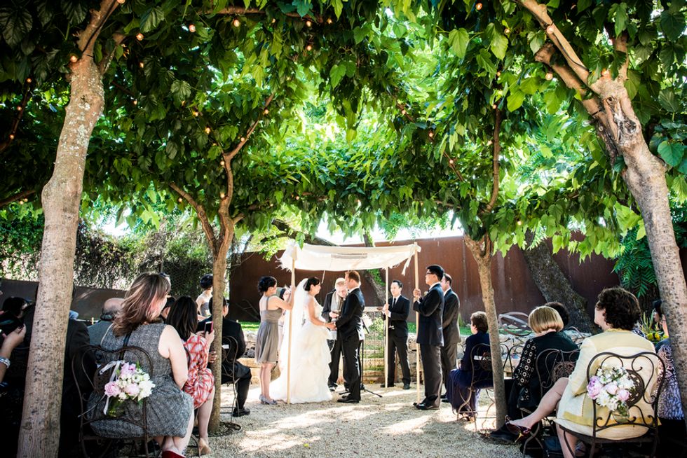 The bride and groom are big food and wine fans (they even make their own wine) so they decided to host their wedding at Barndiva in Healdsburg. Brian and Sandra painted wine bottles with chalkboard paint for kids and guests to write on, and gave out monogramed wooden spoons and cutting boards as favors. The newlyweds also celebrated both of their cultural backgrounds by incorporating parts of Brian's Jewish religion and performing a traditional Asian tea ceremony as well.