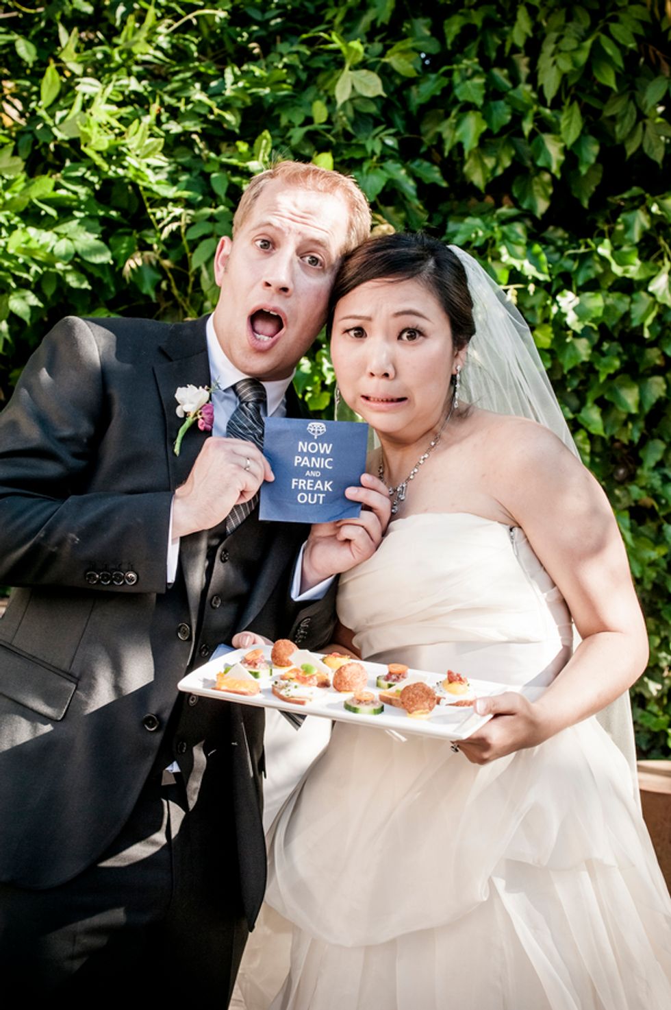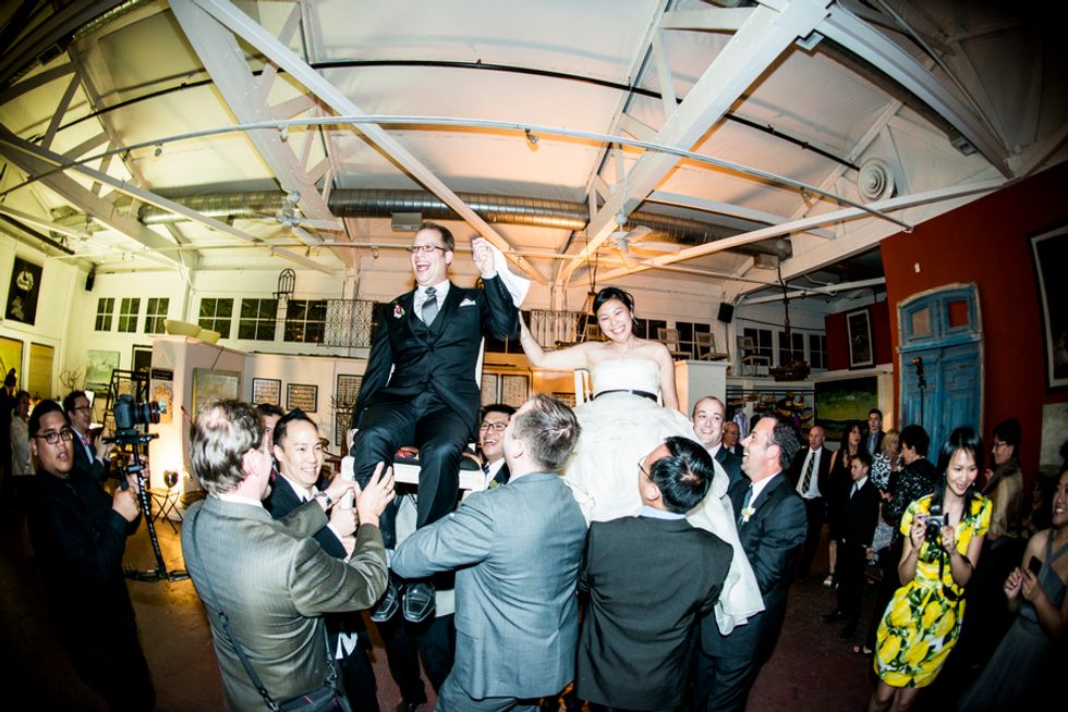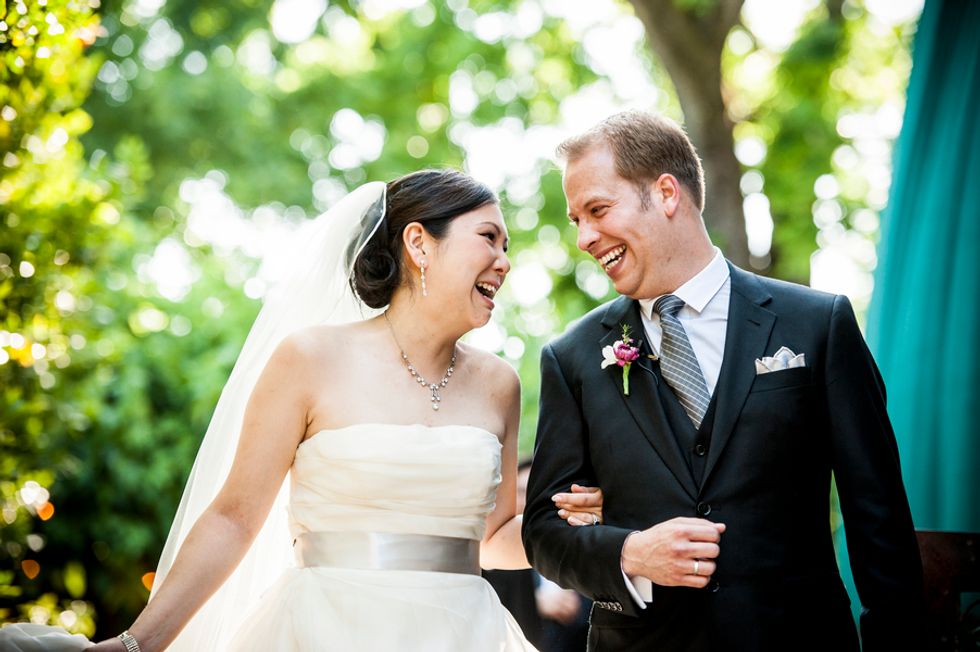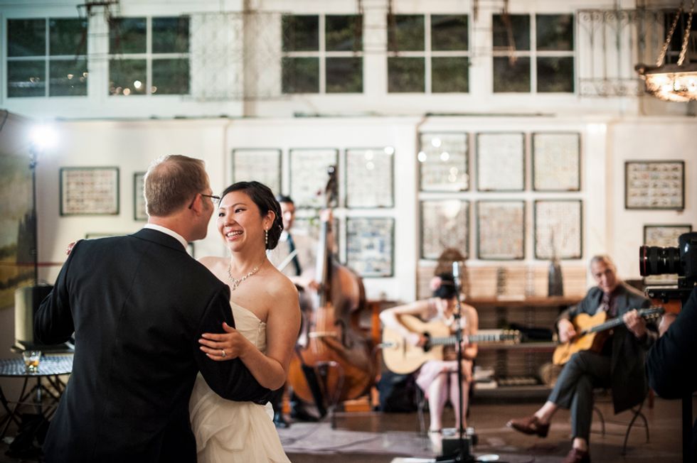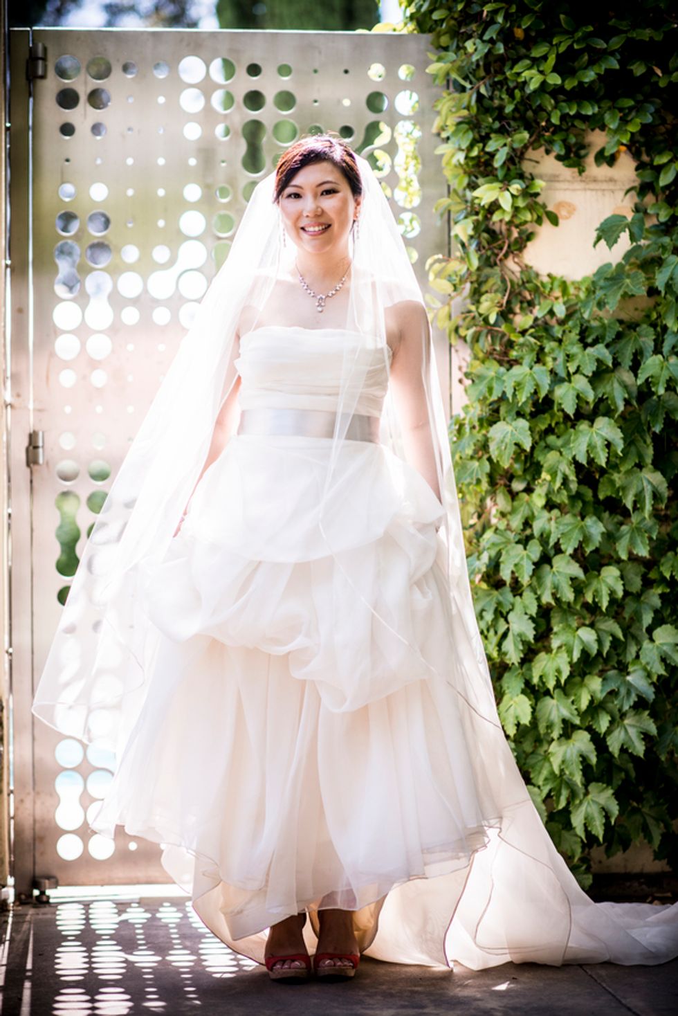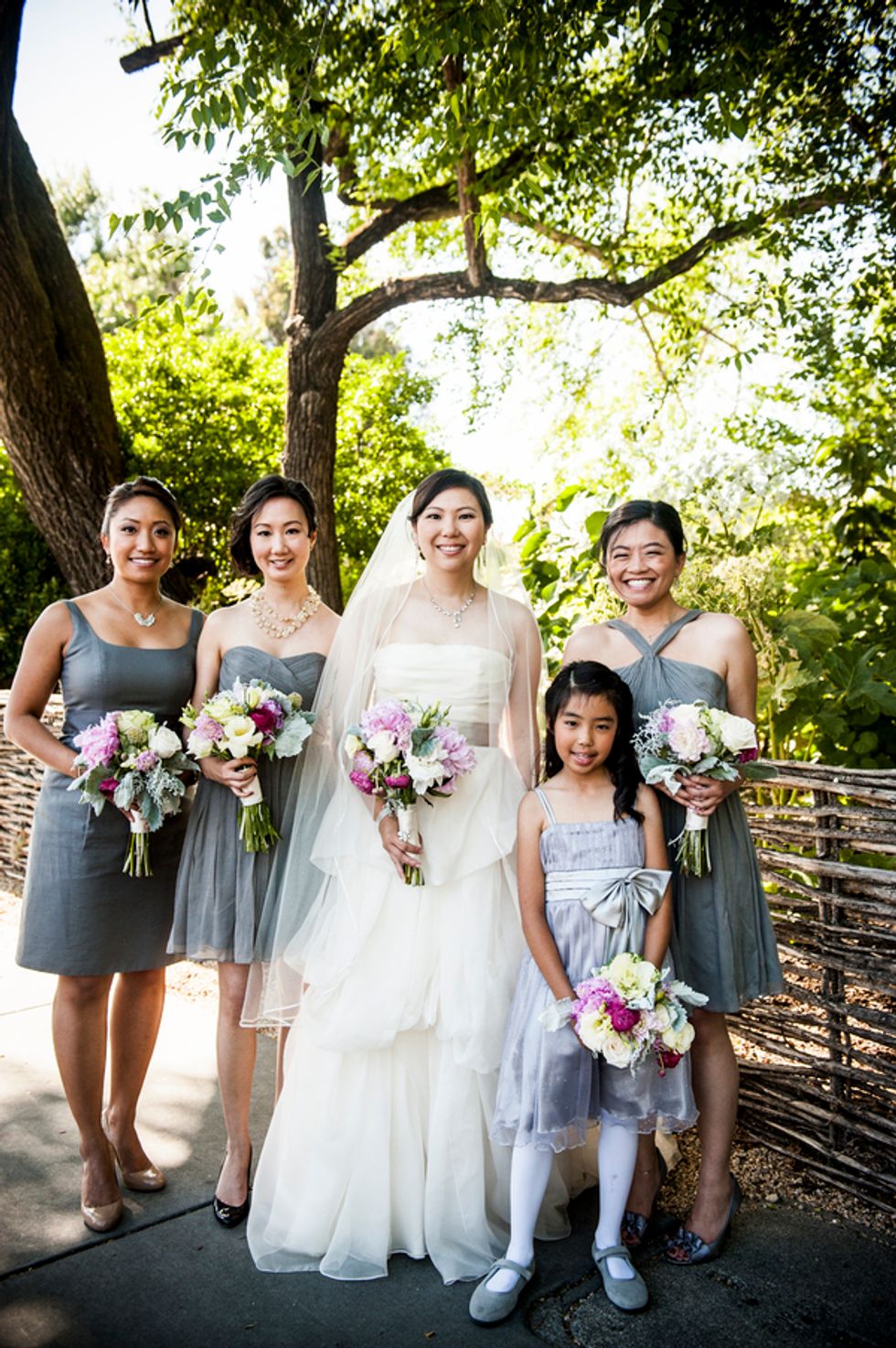 The bride and groom are big food and wine fans (they even make their own wine) so they decided to host their wedding at Barndiva in Healdsburg. Brian and Sandra painted wine bottles with chalkboard paint for kids and guests to write on, and gave out monogramed wooden spoons and cutting boards as favors. The newlyweds also celebrated both of their cultural backgrounds by incorporating parts of Brian's Jewish religion and performing a traditional Asian tea ceremony as well.