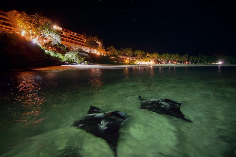 A nighttime manta ray snorkel with aptly monikered husband-and-wife guides James and Martina Wing of Manta Ray Advocates Hawaii is an experience of such once-in-a-lifetime proportions that it stays with you long after you're forced by your friends to stop talking about it. The 35-minute snorkel takes place at the Mauna Kea Beach Hotel, where a bright flood light shines into a small cove, attracting an all-you-can-eat buffet of plankton for the manta rays—toothless, barb-less, stinger-less filter feeders. After rigging you up with snorkel gear, James gives a five-minute iPad presentation on the graceful, gentle giants (with wing spans that can reach 13 feet!) and their efforts to keep them off the endangered list. At the manta feeding ground, an easy two-minute swim from the beach, you'll effortlessly float on the water's surface, keeping your hands and feet to yourself while up to 10 of these pelagic creatures glide around you. Through your snorkel, you'll say lots of muffled oh-my-gods and you'll even pinch yourself, convinced that such a surreal seascape could only be an acid-induced hallucination.