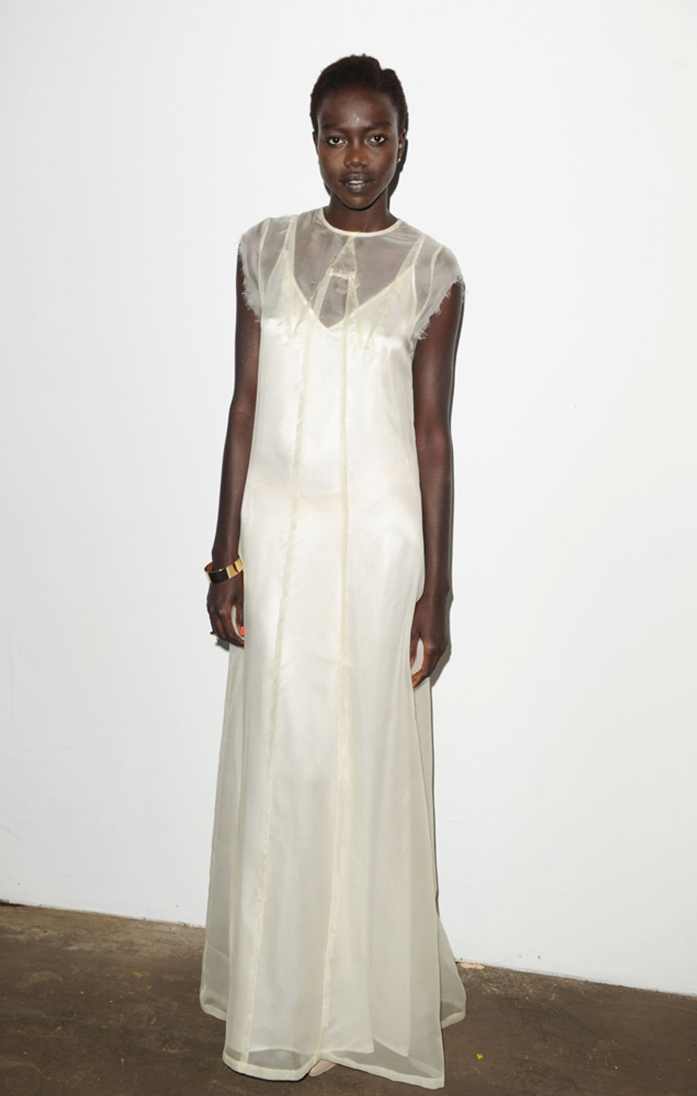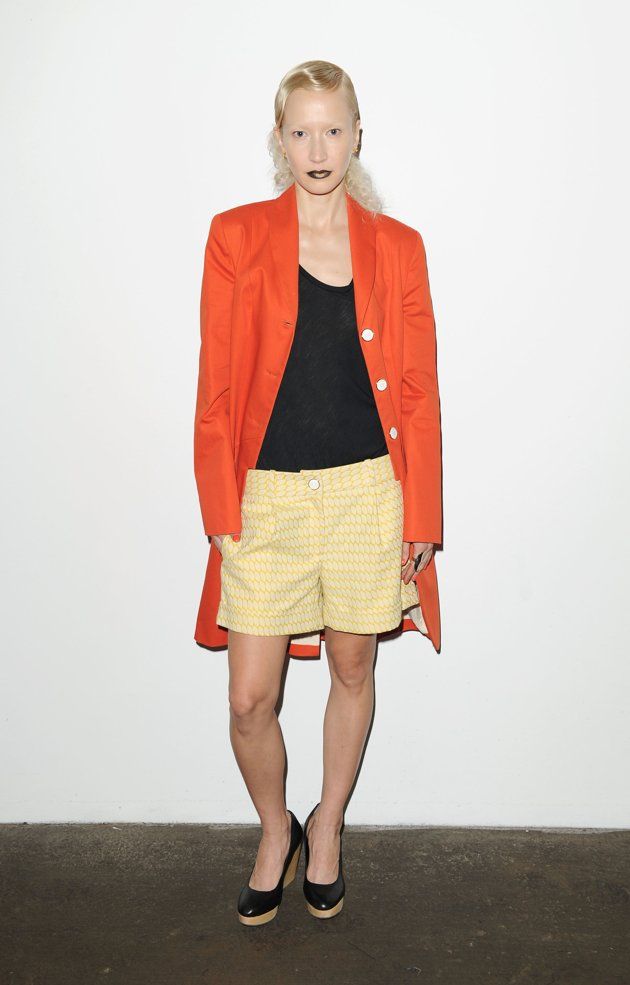 On Sunday, September 9th, fashion lovers and ardent Laricks supporters gathered at Pier 57 for the presentation of her Spring ’13 collection. Models stood atop wooden blocks of varying heights, striking poses as photographers snapped away. Awash in shades of blue, black, orange and buttercup yellow, the collection was a pure representation of Laricks’ unique point of view.
