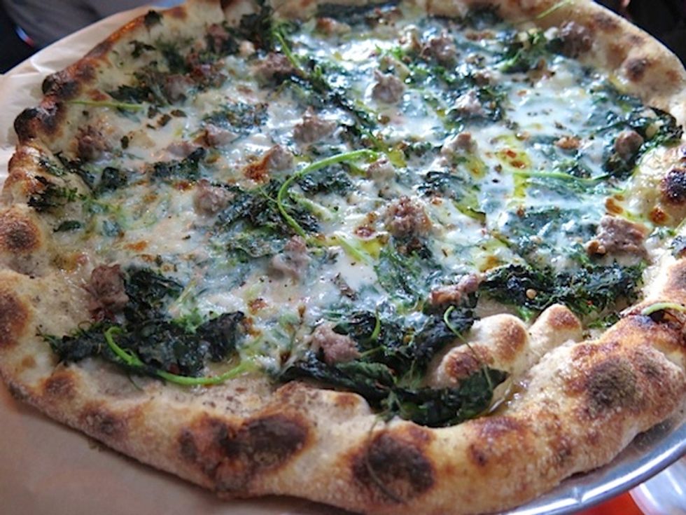 This new Dogpatch pizza shop from Andrew Markoulis and Neal DeNardi is serving a thin-crust pizza that’s SF in style (the dough has a sourdough starter), with some super-fresh toppings (like kale and spinach) from a chef garden they have access to. The White Pie (mozzarella, ricotta, spinach, garlic, olive oil) is harmonious and cheesy-rich, while the Loading Dock (mozzarella, tomato sauce, soppressata, sausage, mushroom, garlic, thyme) lives up to its name—you’ll definitely need a fork and knife for that one. You can get a 12-inch small (averaging $14) or an 18-inch large ($22–$28). While the pizza isn’t necessarily destination-worthy, it’s a good spot to hit if you’re in the 'hood, and they have some tables and a counter where you can perch. And nope, no slices (or beer, yet, although you can bring your pizza to some of the nearby bars). Open Mon–Fri 11:00 a.m.–3:00 p.m. and 5:00 p.m.–9:00 p.m., Sat 12:00 p.m.–10:00 p.m., 2347 3rd St.