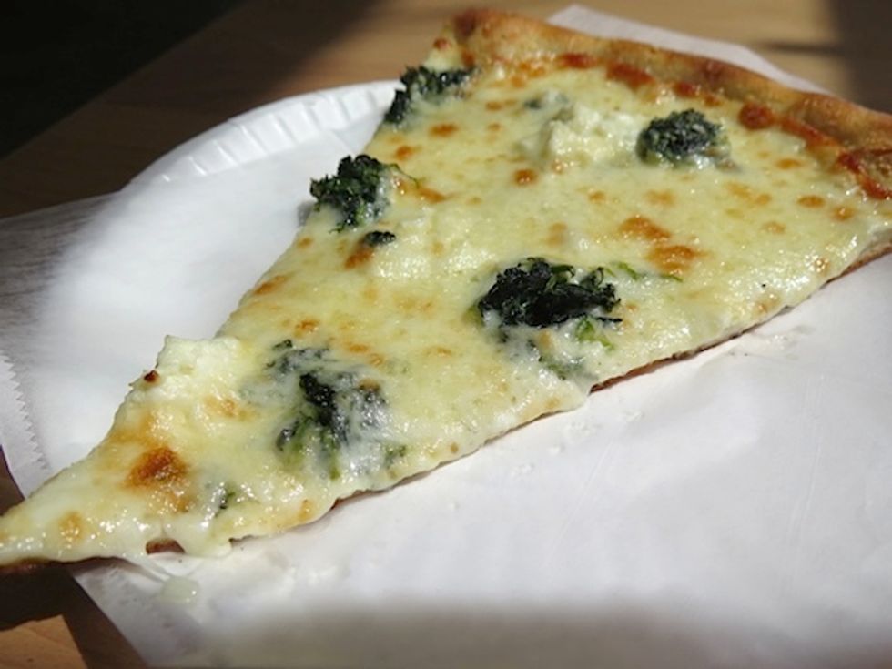 This low-key slice shop from Thomas Jividen on 24th Street is serving East Coast–style, cracker-thin slices that are golden and crisp with a small cornicione (the end crust). There are about 10 kinds you can choose from that he'll warm up in the deck oven (think pepperoni, artichoke, white mushroom, and more). The generous slices are $3 for cheese, $4 for any other kind, or you can get a whole pie made ($19 for plain—request extra sauce if you’re a sauce-loving type). The white pie (spinach, mozzarella, ricotta, garlic, Parmesan) is a winner, with a very ample layer of cheese, and the ingredients are obviously placed with care. There are four tables and a counter if you’re eating on premise, and afterward you can cross the street for a cup of coffee from Philz in case you start slipping into a cheese coma. Jersey folks will quickly recognize the magnet on the soda machine. Hours are Tue–Sun 12 p.m.–9:30 p.m., 3104 24th St.
