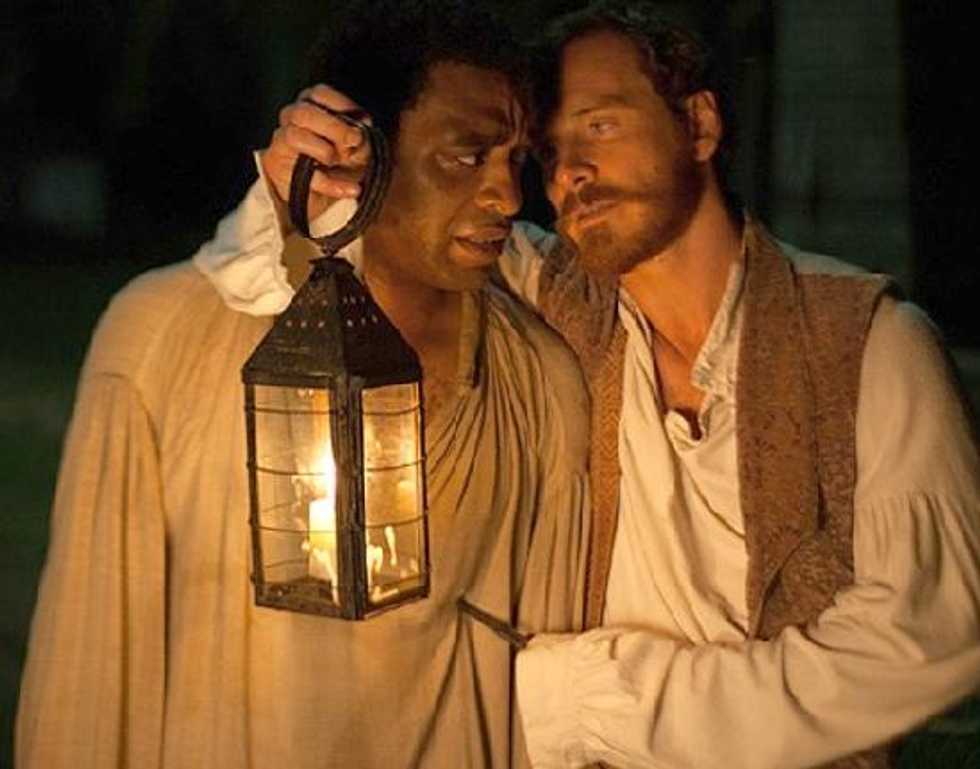 If he is the viewer's proxy then McQueen's favorite monster, X-Men actor Michael Fassbender, is his guilt. In contrast to Platt's mostly benevolent first owner, Mr. Ford (Benedict Cumberbatch), Fassbender is a madman in full Kinski mode as the fiery, mercurial Edwin Epps. Ever-wild, Fassbender visits his fire-and-brimstone wrath on Platt and the rest of his charge, especially his favorite slave, Patsey (Lupita Nyong'o), the object of both his domineering lust and a great deal of his rage. Though it's clear he values her more than even his wife, it's not as a human being but as chattel, prize livestock that may be disposed of at any less-than-convenient moment. In the extravagant South, death is always in the balance for the enslaved. In one harrowing scene, a nearly lynched Platt hangs in the foreground, tip-toes barely touching slick mud, while the other slaves go about their business, knowing that any further protest toward his innocence means certain death.