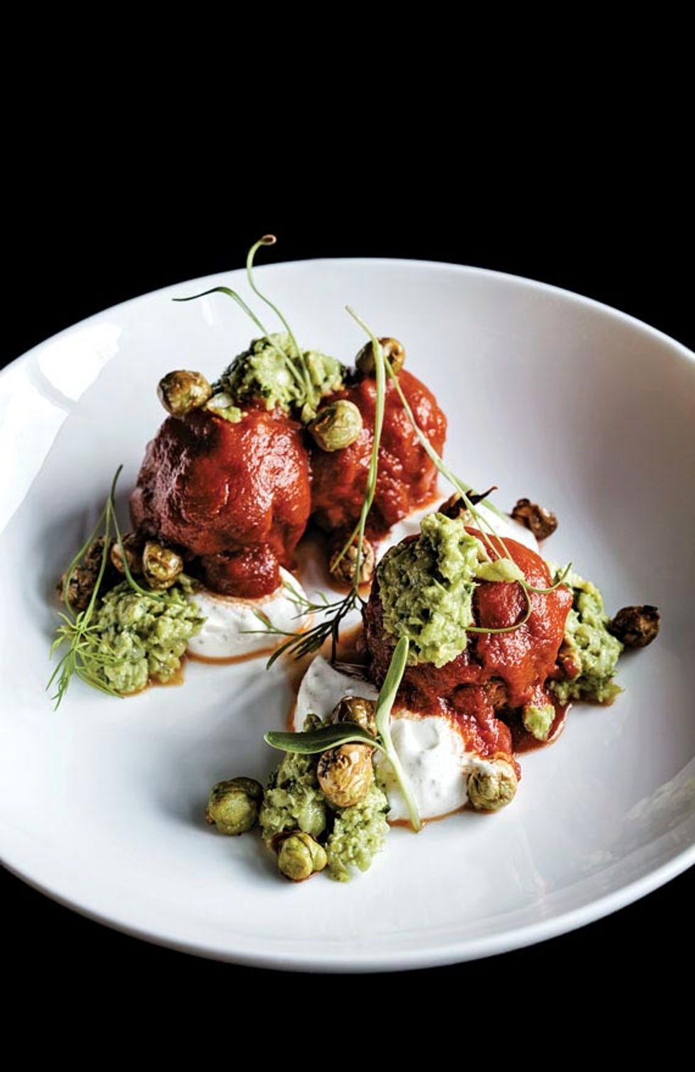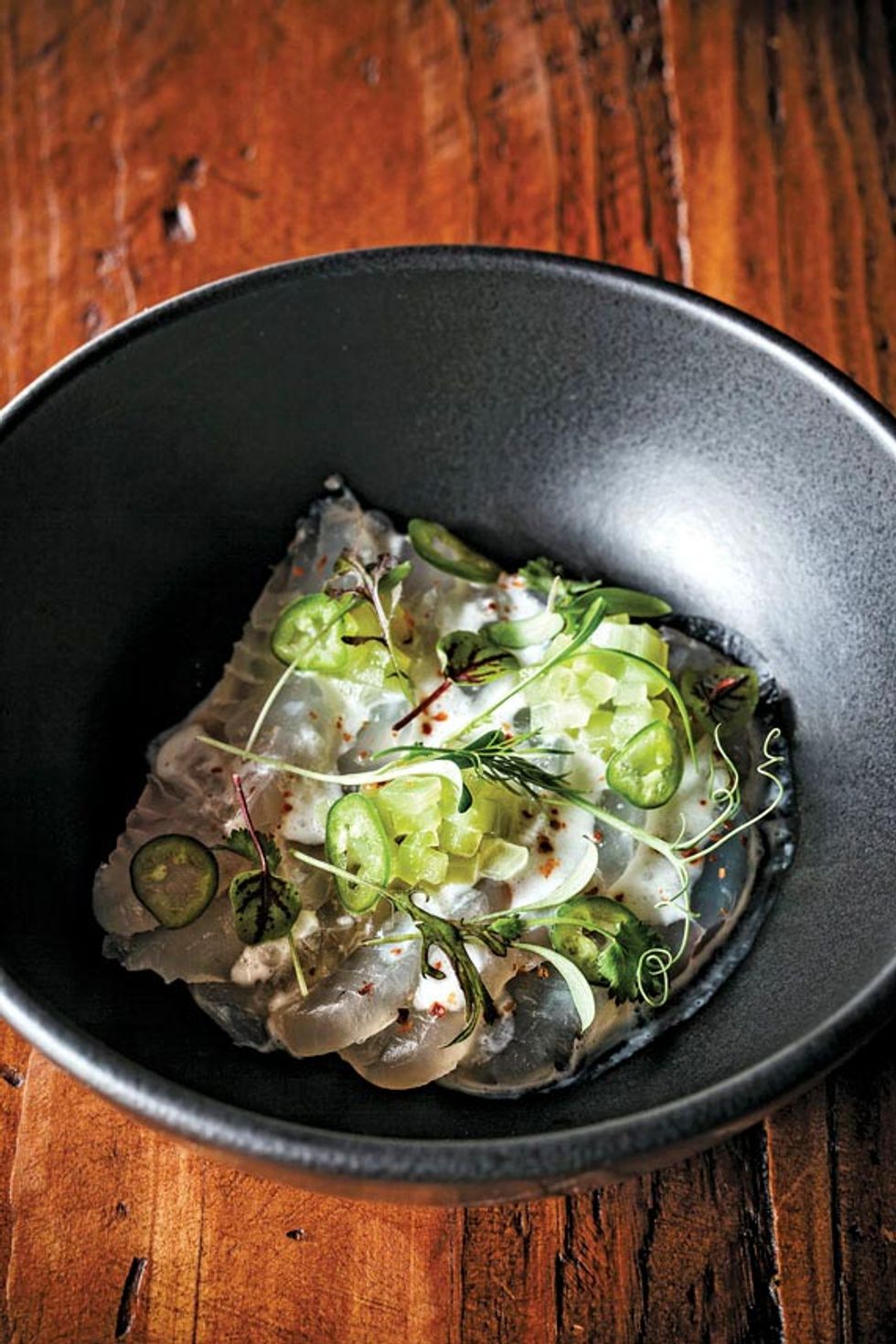 Fernando’s dishes are sophisticated but never precious—no doubt thanks to his training in French technique at San Jose’s Le Papillon. Take, for example, his terrific spin on the kale salad, dressed with funky fermented black garlic-lime vinaigrette, coconut, and parmesan. He classes up Mulligatawny soup with chicken confit. And his umami-rich, black-curried sturgeon, served over red basmati rice with crispy maitake mushrooms, may be the menu’s star.
