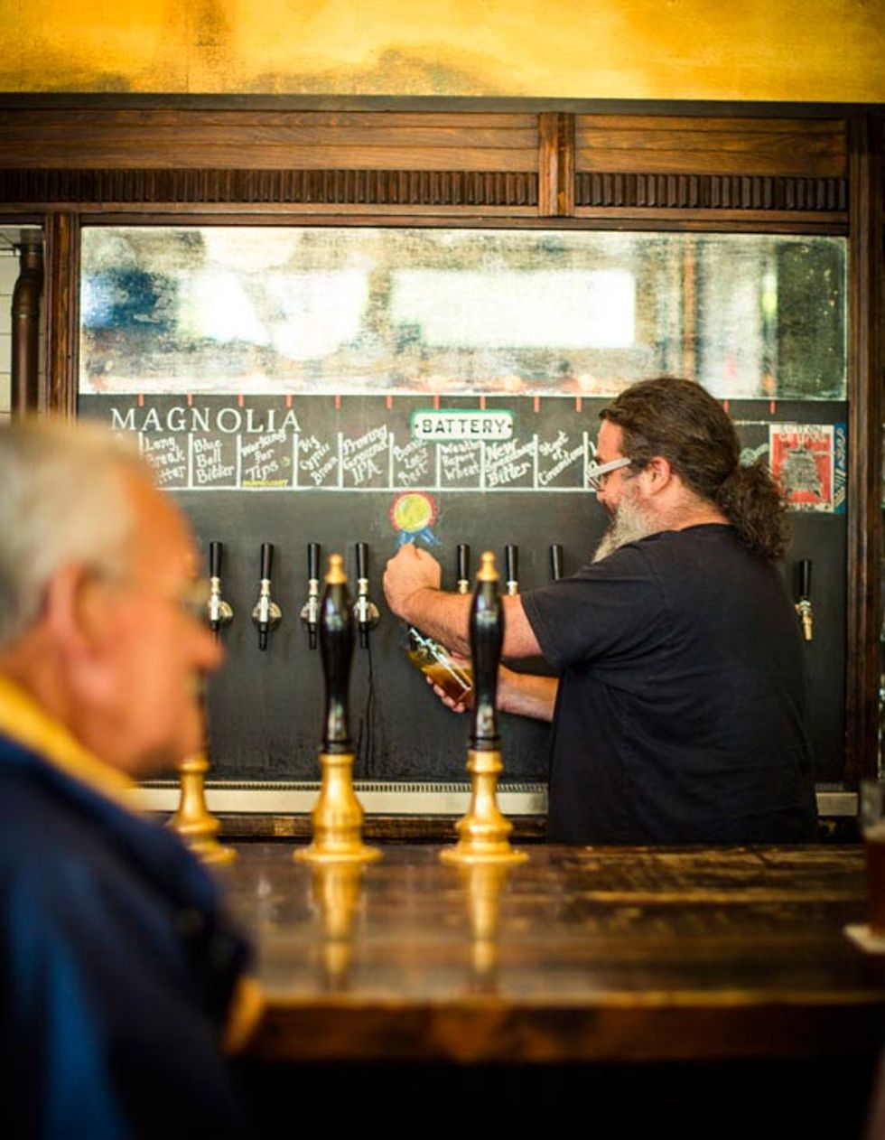 The underbelly of the Upper Haight’s beloved Magnolia brewpub at first resembles a scene from The Matrix, with 1,800 square feet of cramped basement lined with steel tanks and plastic tubes. But Grateful Dead stickers and a friendly team of self-described “brewers with beards” are evidence of a more benevolent plot. It is here that owner Dave McLean—who has the enthusiasm of a hobbyist but all the knowledge of a master (including a degree in brewing science from University of California, Davis and 20 years experience)—has kept Magnolia’s taps flowing for the past 15 years.