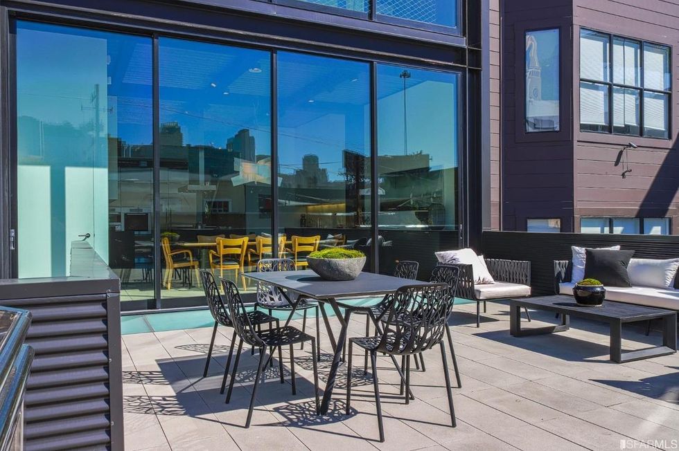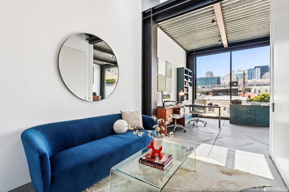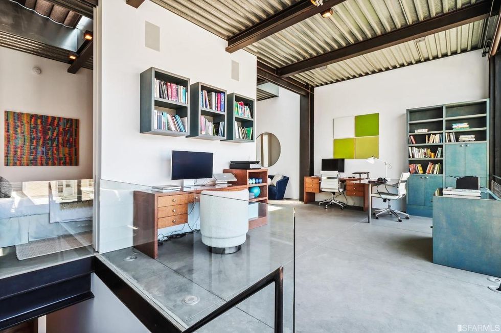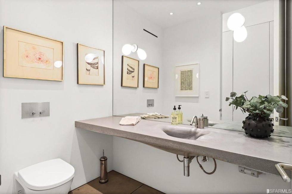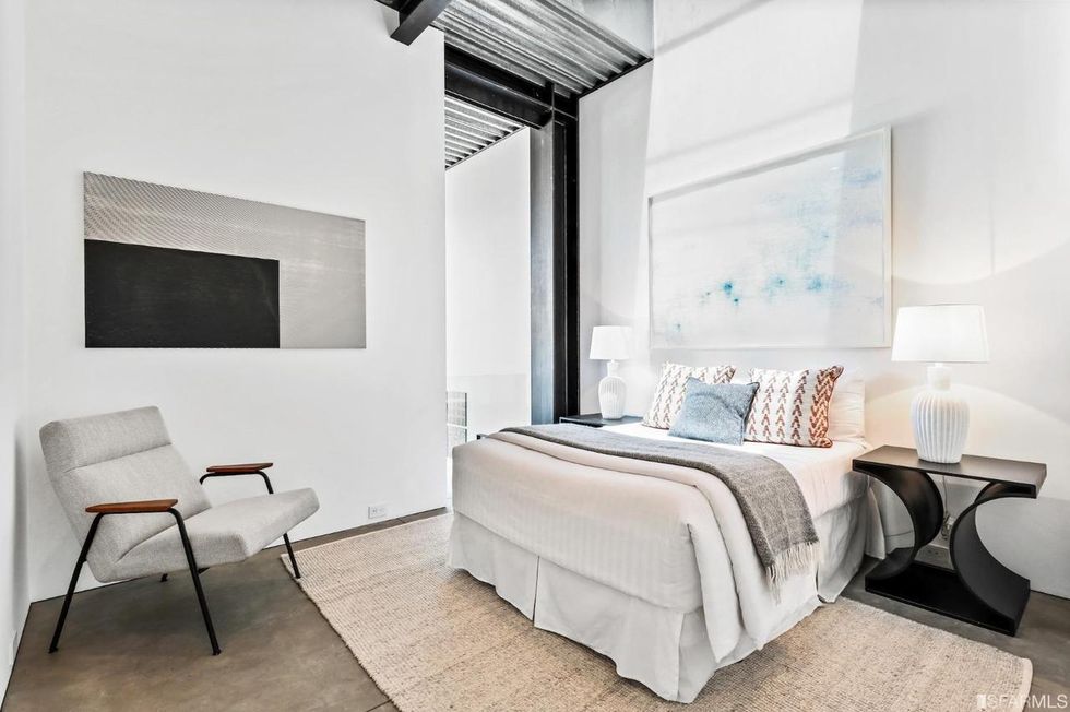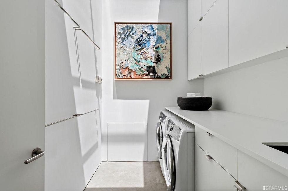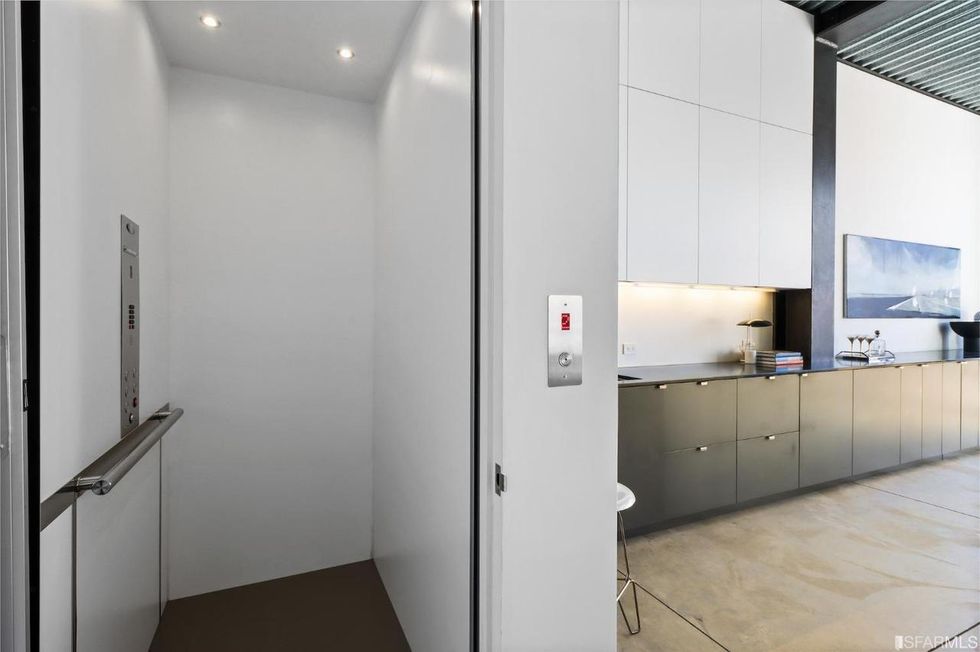 Towering ceilings, poured concrete floors, a steel staircase lend a modern industrial vibe, but elements such as a wine cellar and a thoughtfully equipped chef's kitchen keep the space welcoming for entertaining. Cooks will appreciate the abundance of kitchen storage, two sinks, stainless steel appliances, and a sprawling center island.