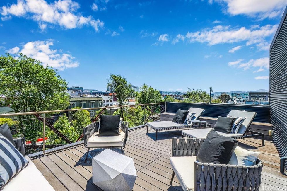 The third level houses three bedrooms and two bathrooms each with bright light and stylish touches. Take in expansive views of the skyline and South Park from this level.