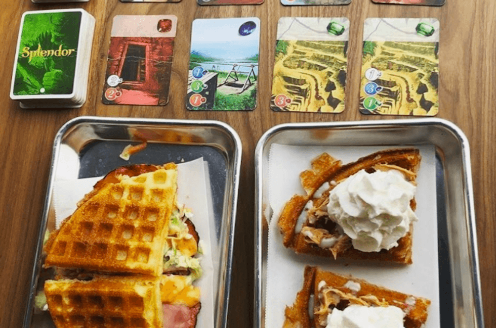 The menu is entirely gluten-free with zesty and sweet lunch and dinner fare, some of which Lew has named after board games—think Bananagrams (a mochi waffle with banana, Nutella, chocolate, and coconut whipped cream) and the Mouse Trap (a crispy garlic and onion waffle sandwich with sharp cheddar, gruyere and fontina cheese). There are also build-your-own options.