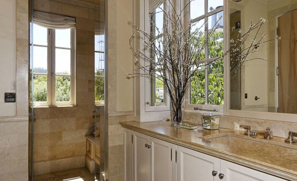 The bedrooms are romantic, and so is the master bath. The shower has a window: