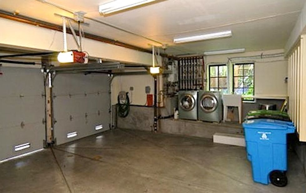 Despite all the lovely surfaces, the laundry is still in the garage.