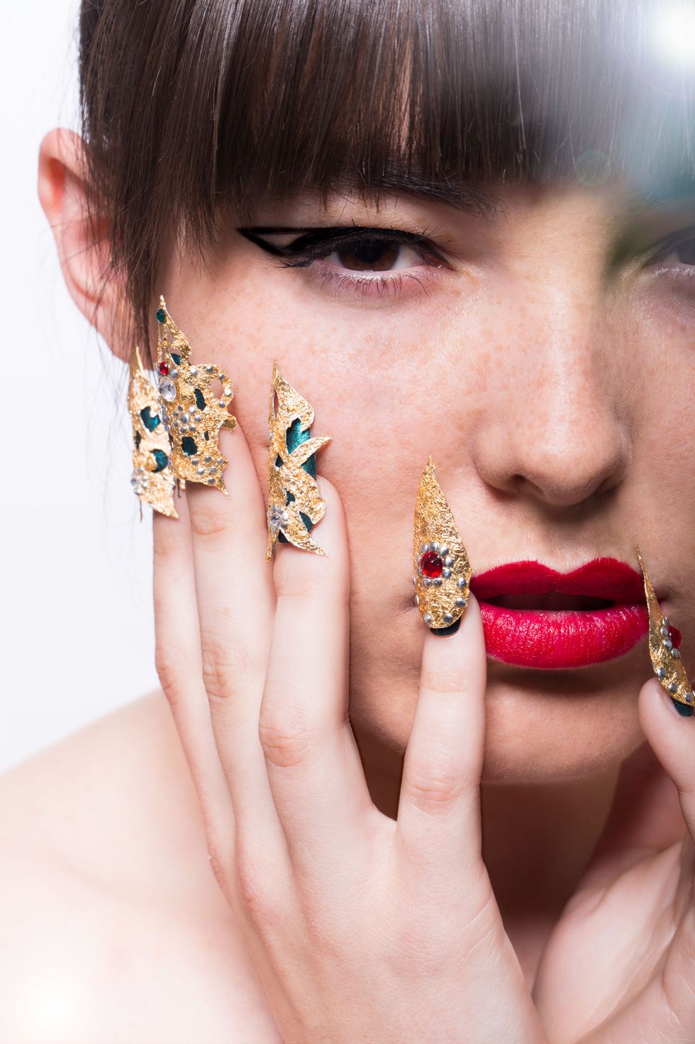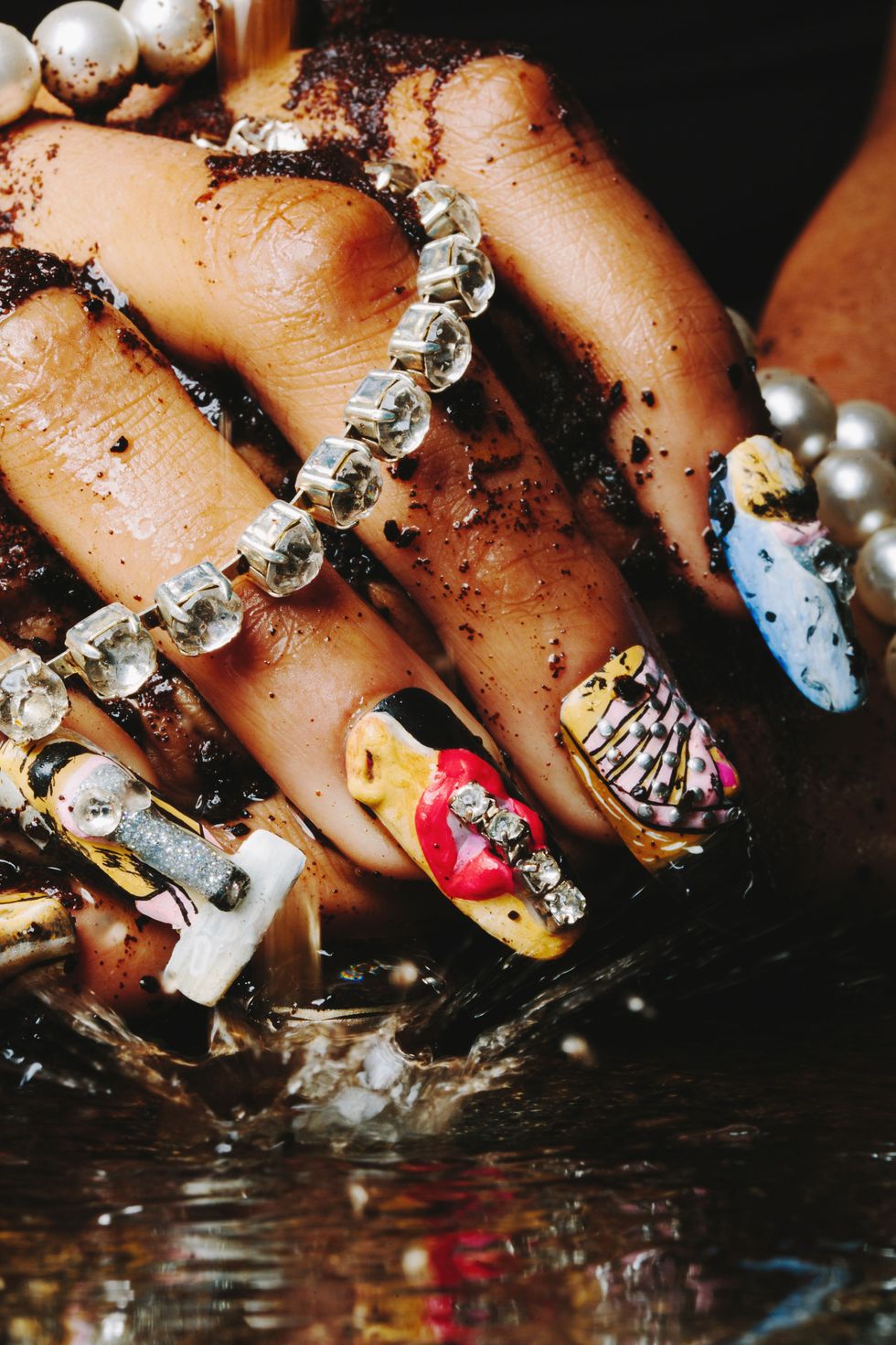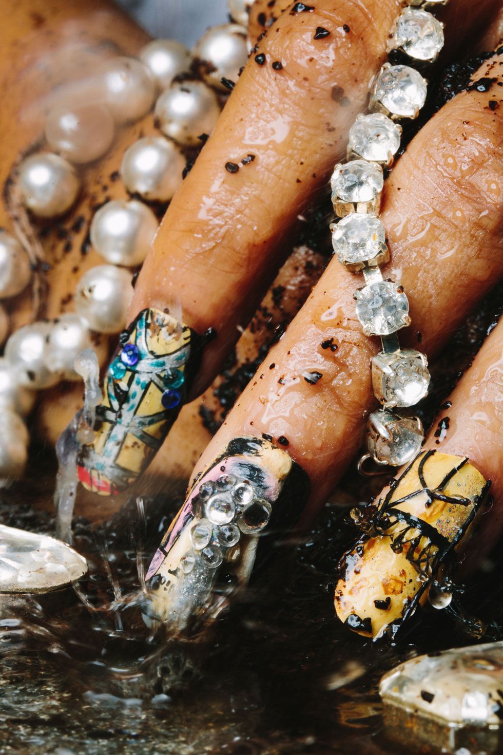 "Gorgeous," the new exhibit from SFMoMA and the Asian Art Museum, features works that subvert or extend conventional iconography associated with beauty, spanning hundreds of years and over several continents. As part of the exhibit, the museums commissioned local nail gurus TopCoat Nails (think Uber for manicures) to craft nail designs inspired by the show's overriding aesthetic. As evidenced, the resulting photos are unsettling, gorgeous, and gritty—literally. Dirt mingles with pristine tips and toes, rebuffing the notion of the antispectic beauty process you might find at your favorite nail salon.