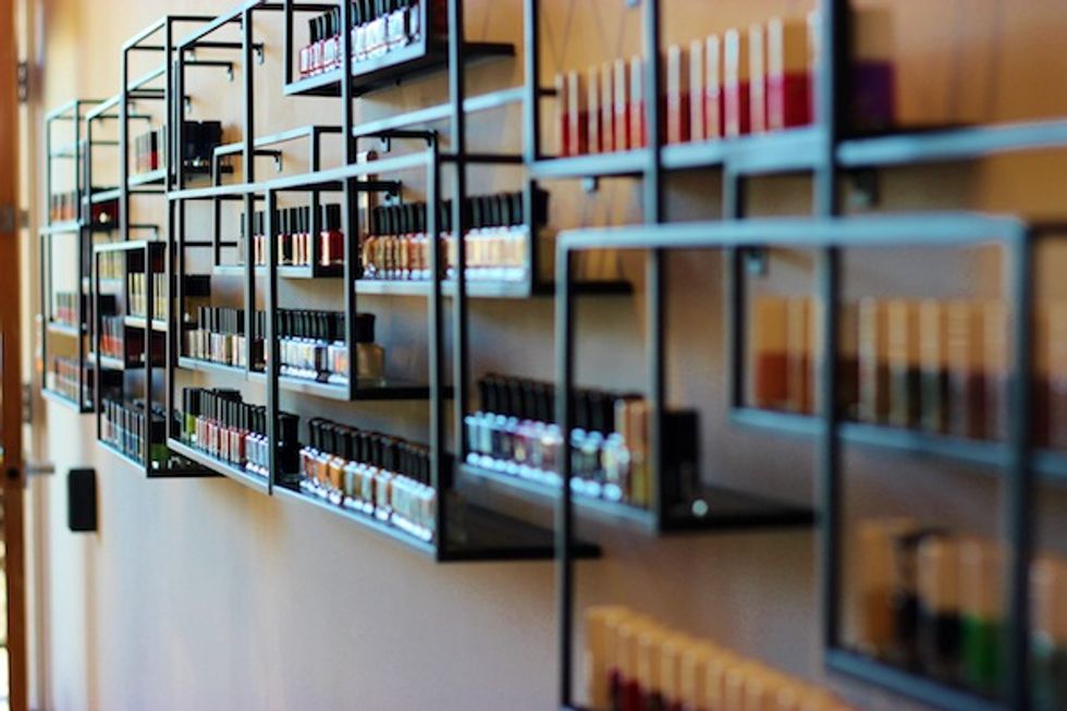 Luxe factors: The treatment starts with a foot soak in warm water infused with peppermint oil, which is naturally anti-microbial and cooling--perfect to soothe tired hooves. A creamy hydrating mask is applied to the feet with a soft fan brush before they’re inserted into two plastic bags of warm paraffin. Rinse, massage, repeat, and you’re ready for color.