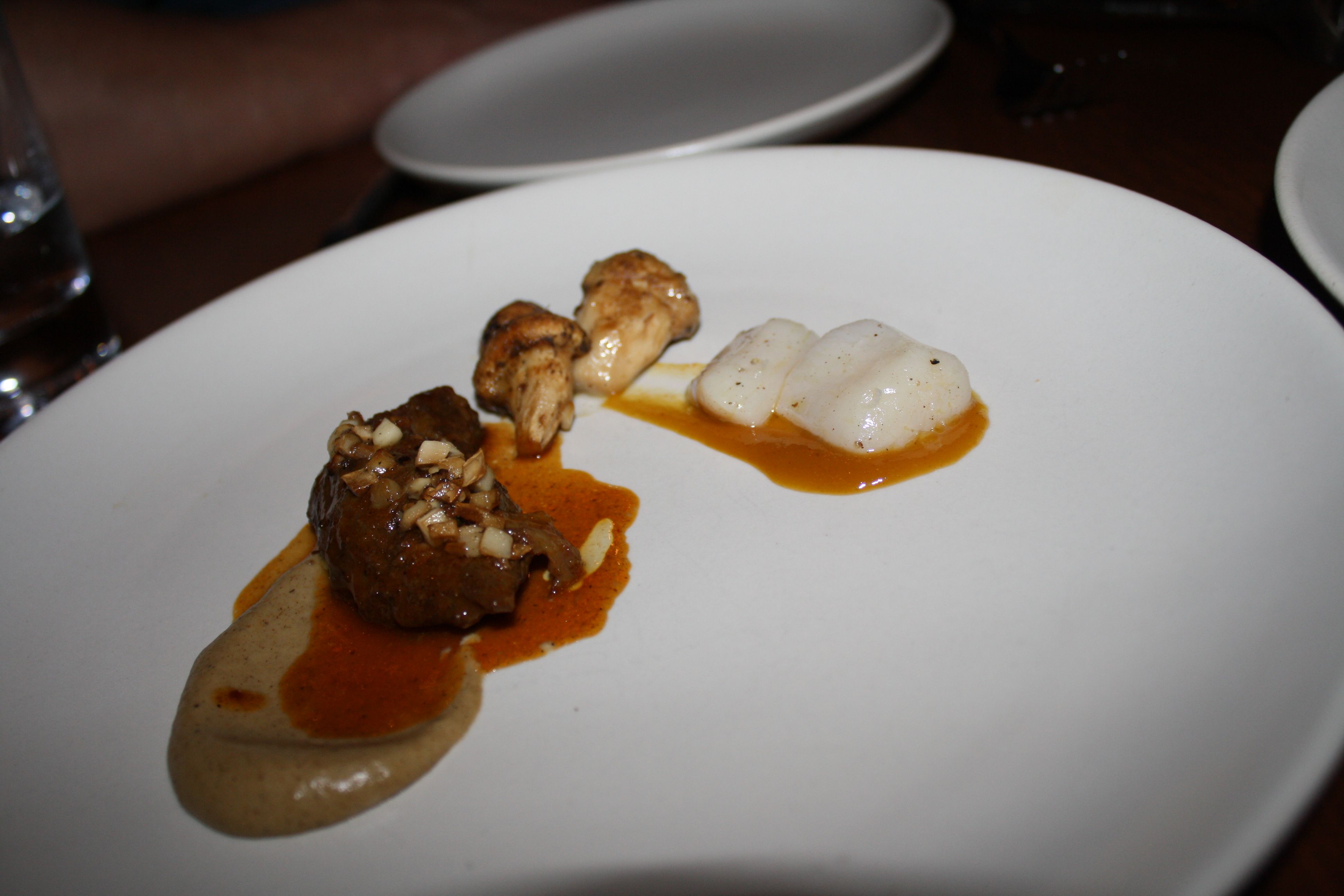 If you're going a la carte, there's a crusty scallop with a crispy fried sweetbread ($16) that tastes like Popeye's chicken, all grown up. There's "Arroz Vegetariano" ($22) bursting with paprika seasoning and seared into a cake on the plancha. And even escargot-haters should try the roasted rabbit sadle with snails ($32). The kitchen braises the mollusks in soffrito, rendering them tender and mild. Promise.