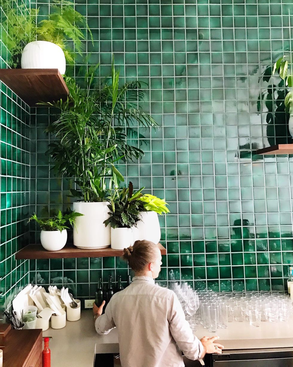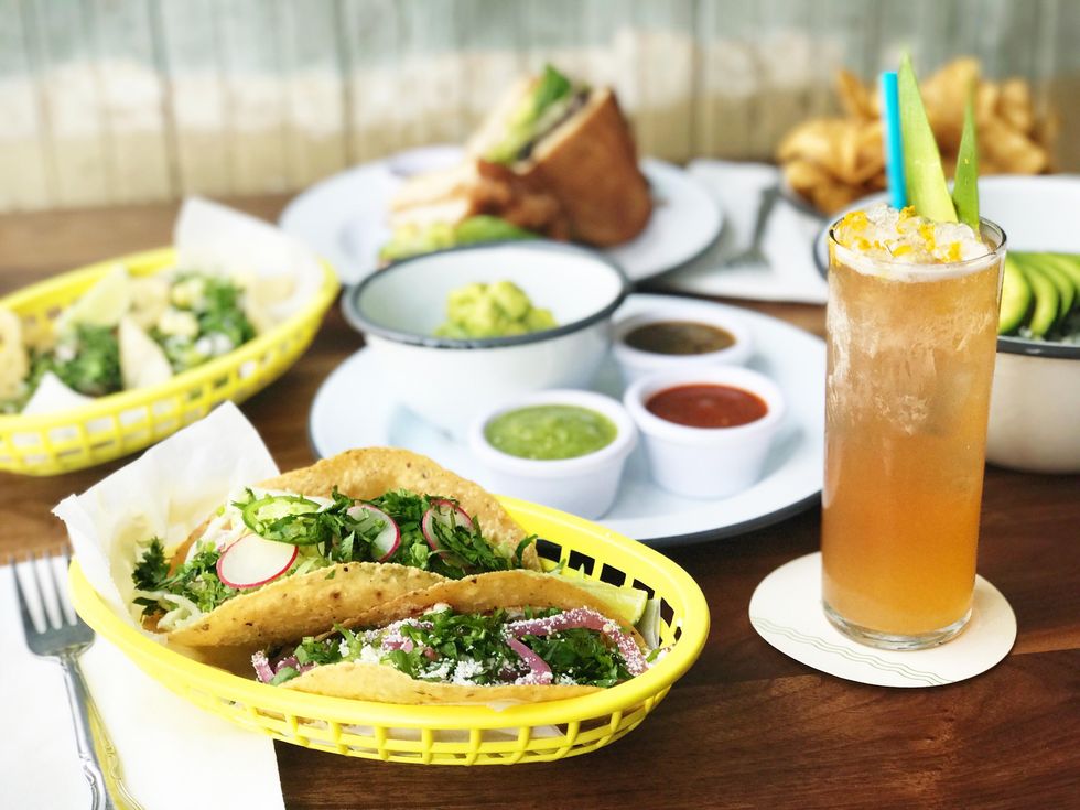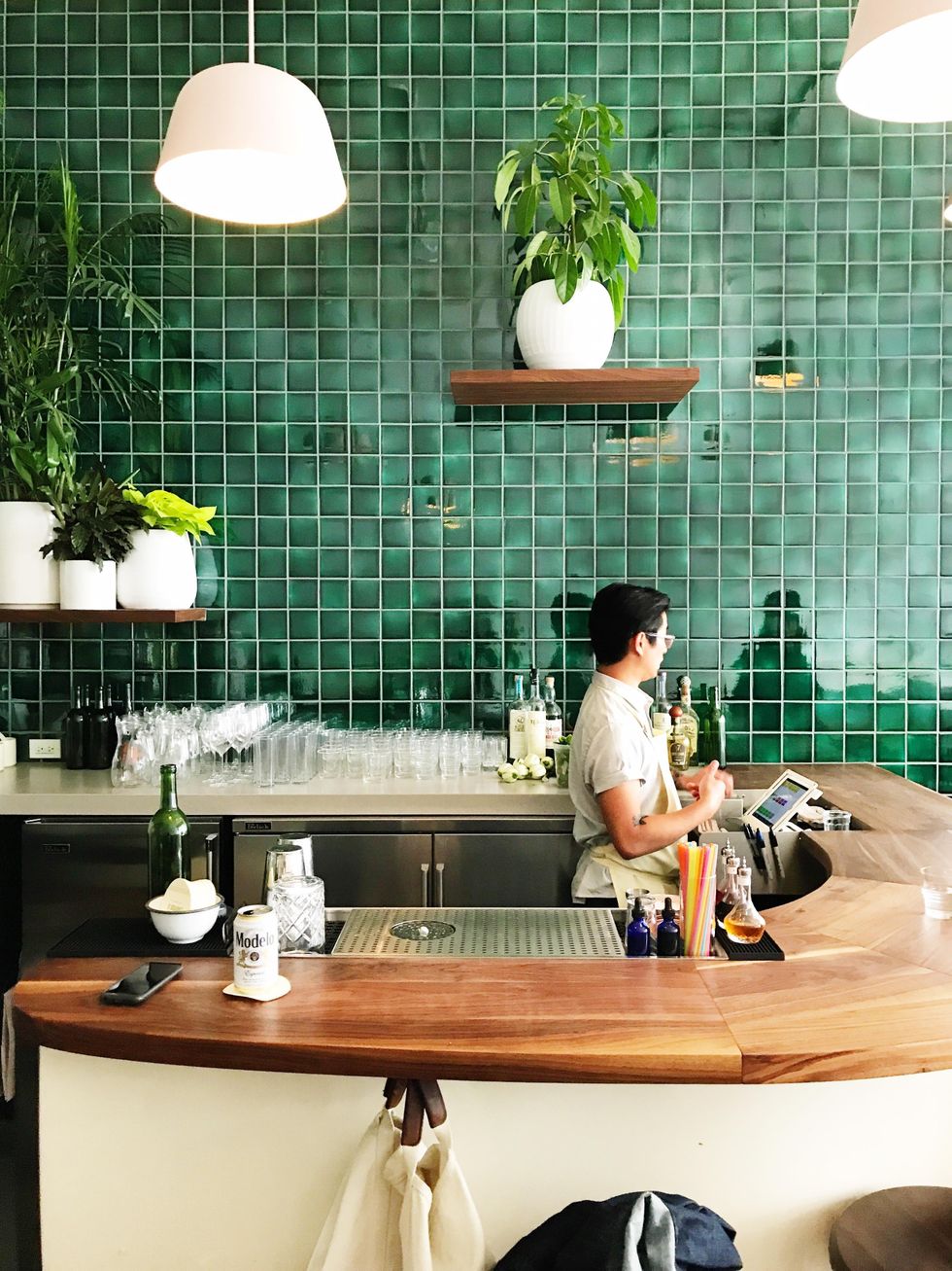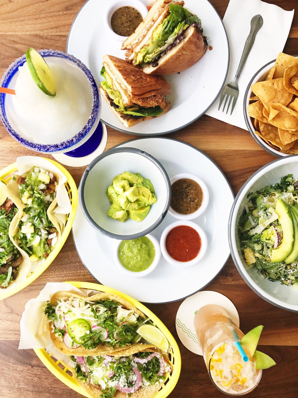 Here jungle-green tiles and turquoise woodwork just barely camouflage against an assortment of lush palm fronds and ferns; and mountainous blended margaritas and a smorgasbord of tacos make for the ultimate vacation-inspired dinner. You can all but feel the sand between your toes.