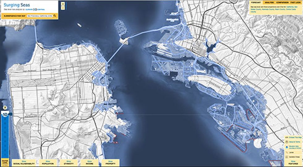 At a measly 934 above sea level, San Francisco is a goner. Oakland, too.