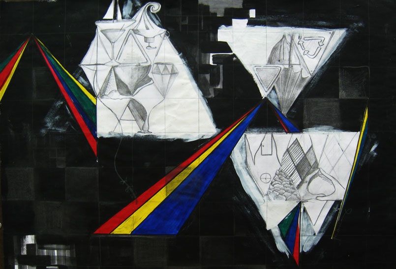 Round Two of our Exquisite Corpse game concludes today, so if you creative types out there have any last minute response drawings to the trippy prism painting by Kelly Lynn Jones to send our way, get to it! Entries must be mailed as JPEGs (500 width by 700 height at 72 dpi) to exquisite@7x7.com!