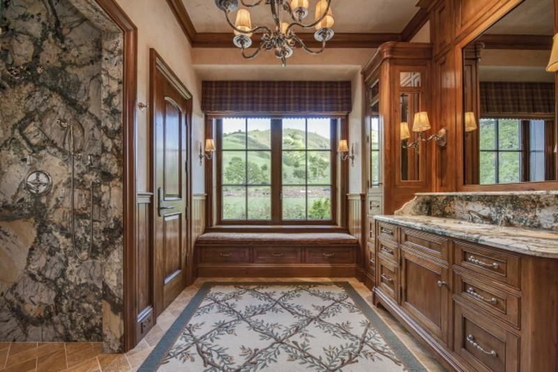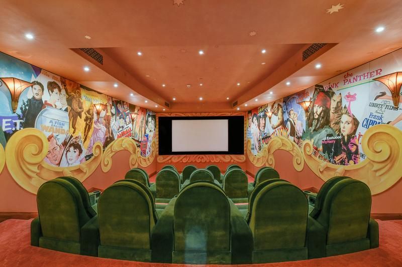 Speaking of entertaining, you'll be the host with the most thanks to the many bottles in your castle-like stone wine cellar and your home theater with three rows of soft cinema-style seats. When you're partied-out, take to the waters in one of the house's multiple jetted tubs.