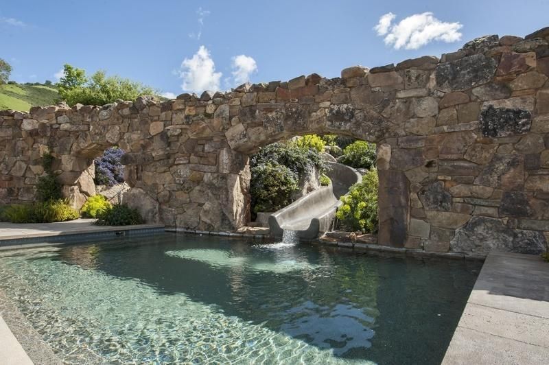 Extras: 12-car barn garage, pool with slide, wine cellar, home theater