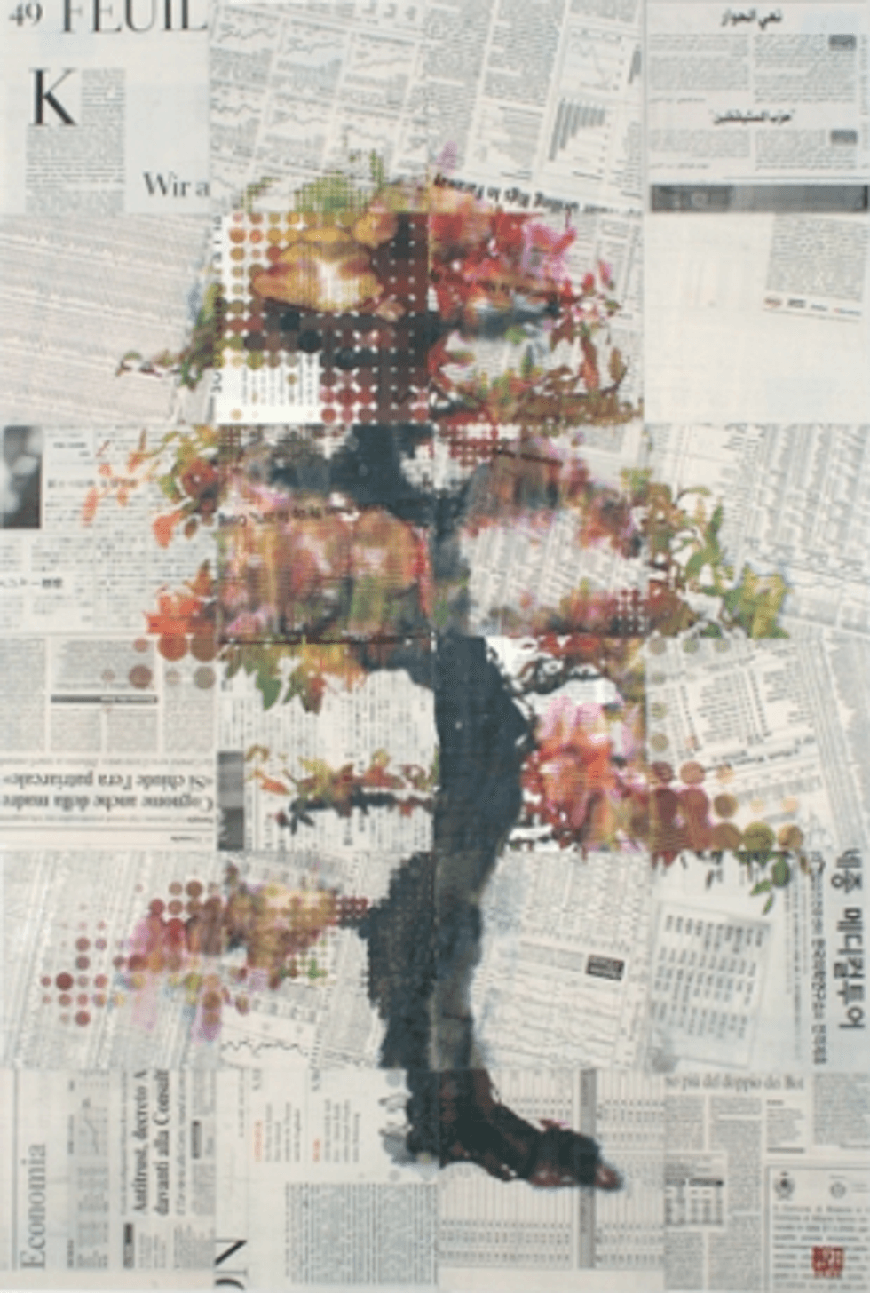 Phillip Hua: A perennial favorite, Hua is interested in the intersection of painting and contemporary society. His inked tree blossoms printed on newspaper speak to the relationship between nature and technology.
