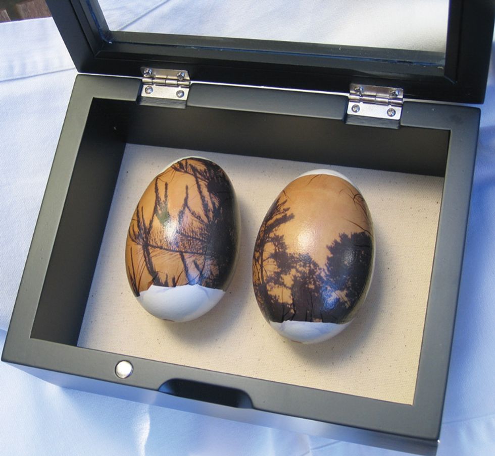 Prudy Kohler: A more melancholy spin on the Faberge egg, you would never guess that her designs are works of photographic transfers.