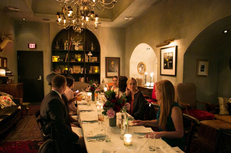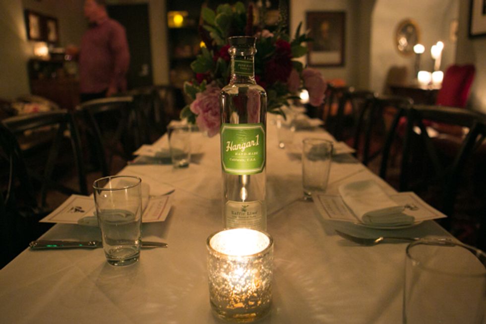 Fresh from enjoying their celebratory after-work fete, the team at Lookout continued to celebrate their victory in the 7x7 Hangout Series with a decadent dinner held in a private room at Jen Puccio’s newest mid-Market establishment. Dozens of candles flickered, dancing off the luxe and layered decor to create an intimate and stylish atmosphere. Puccio and mixologist Gabriel Freiberg created a distinctive menu that played perfectly against the Hangar 1 craft cocktails, which featured the team’s hand-infused “Smashed and Stoned” vodka, flavored with nutty stone fruit pits.