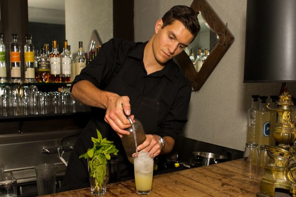 Gabriel Freiberg mixes the evening's signature cocktail