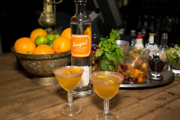 The evening's signature "Smashed & Stoned" cocktail with infused Hangar 1