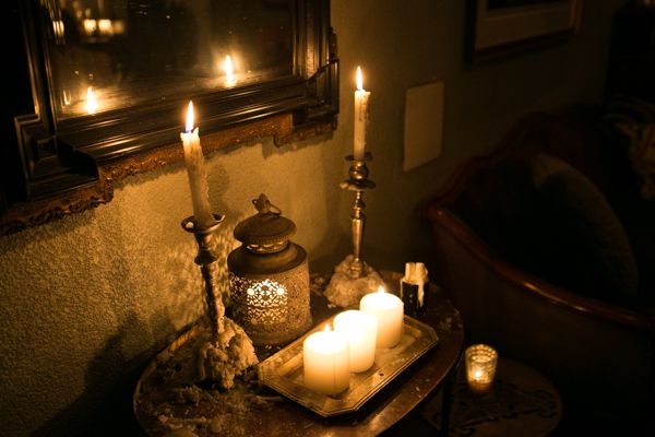 Flickering candles provided ambient lighting
