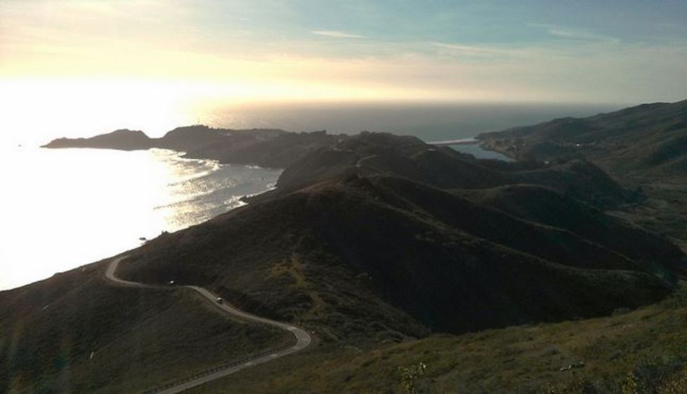 Turn left on Conzelman Road and continue up past the fortifications overlooking the bridge turning west as a view of the Golden Gate opens up before you.