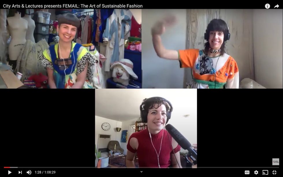 A screenshot from City Arts & Lectures' recent webcast of "Femail: The Art of Sustainable Fashion."