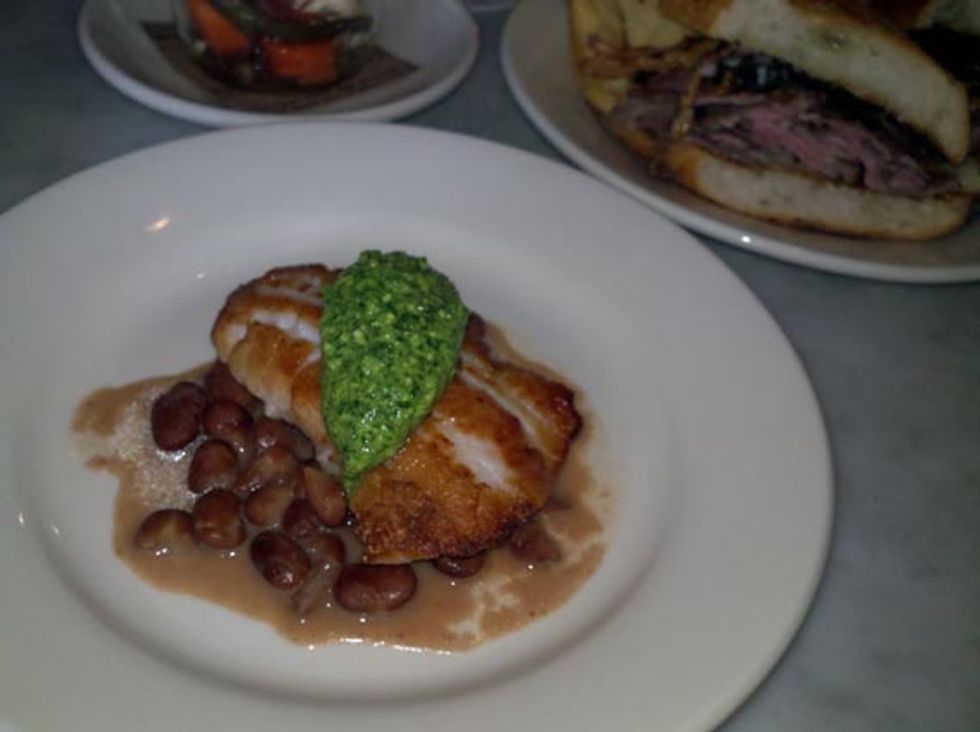 Lighter eaters could try the wild rock cod with a colorful quenelle of arugula pesto, or—a meat lover's vegetarian concession—a savory pate made with roasted walnuts, vermouth, butter and cream. It mimes the color, texture and meatiness of the real thing alarmingly (and deliciously) well.