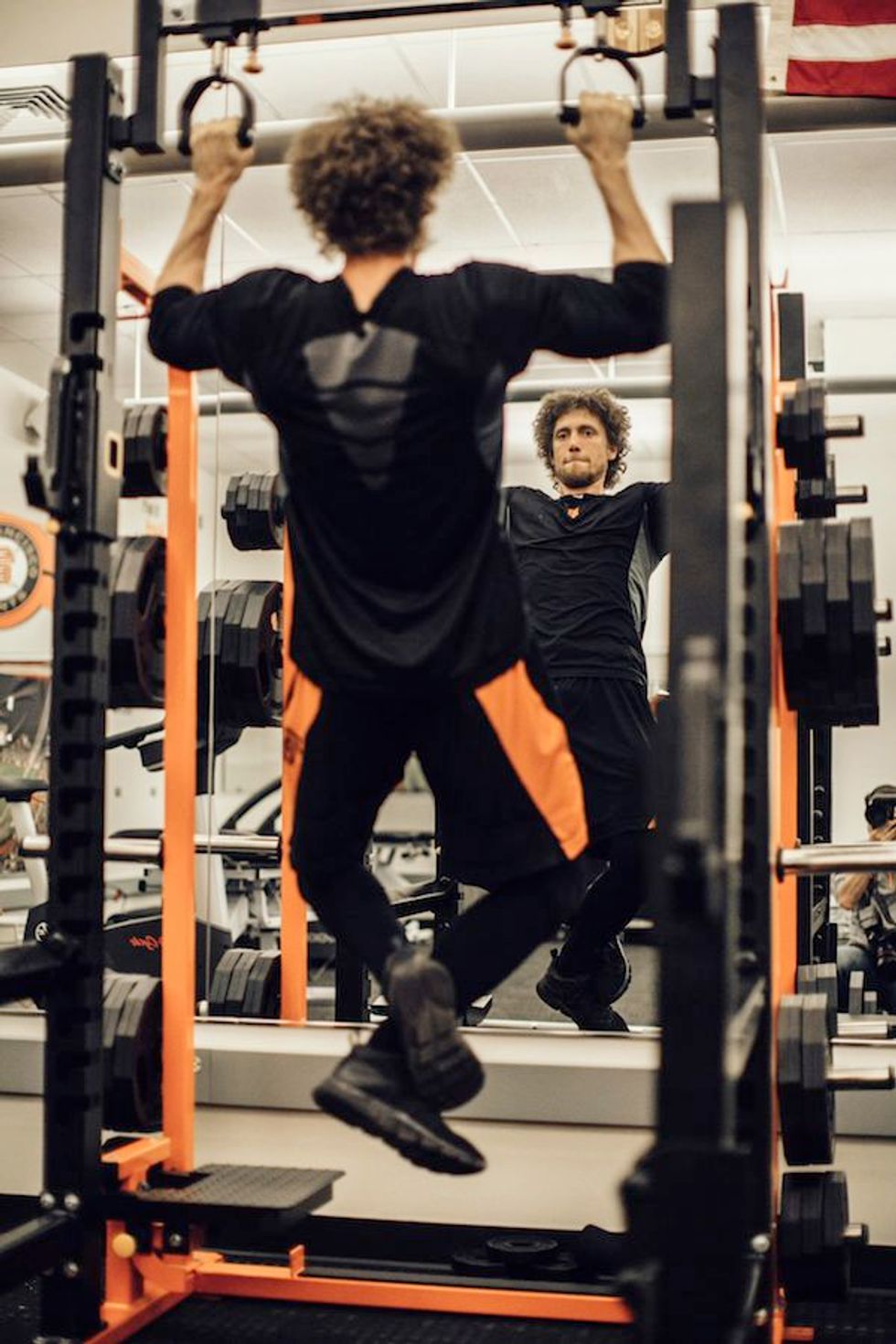 During the three-hour workout, Hunter and I discuss a myriad of things. From Pablo Sandoval's departure ("He's a great guy, and deserves to be wherever he wants right now," says Pence); his girlfriend, gamer Alexis Cozombolidis (the hosts of Twitch show Lets Get Lexi, whom he met at IGN); the negativity of life's petty dramas; and team rivalries ("When we play against LA, it's an entirely different vibe at the park. You can feel it in the air. I love it").