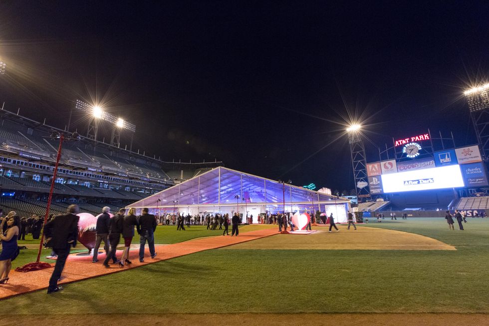Hearts After Dark danced the night away on center field, rocking out to DJ sets by Mayer Hawthorne ("Her Favorite Song," "The Walk") and Wild 94.9's Magic Matt. Giants fans swung away at fastballs in the park's underground batting tunnels before relaxing in the dugouts and making memories in the slow motion booth donated by Motionscope. The proceeds from the event went to benefit the San Francisco General Hospital and Trauma Center, where they will support life-enhancing programs and initiatives in their developing stages through the Hearts Grants Program.