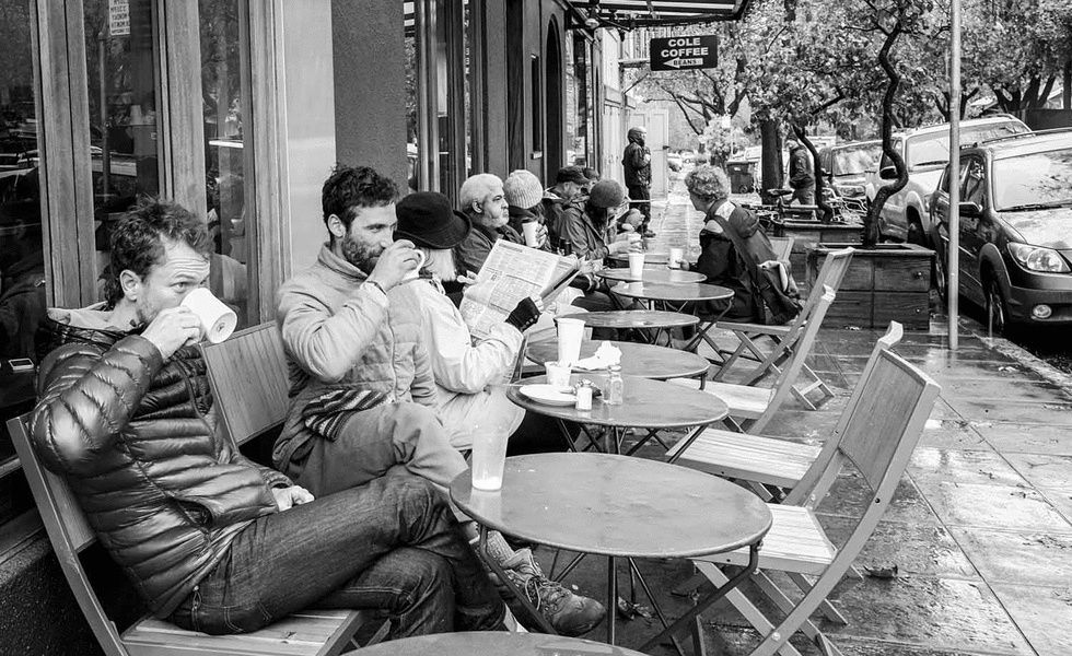 Regulars line the sidewalk at Cole Coffee. (Photo by cdrin)