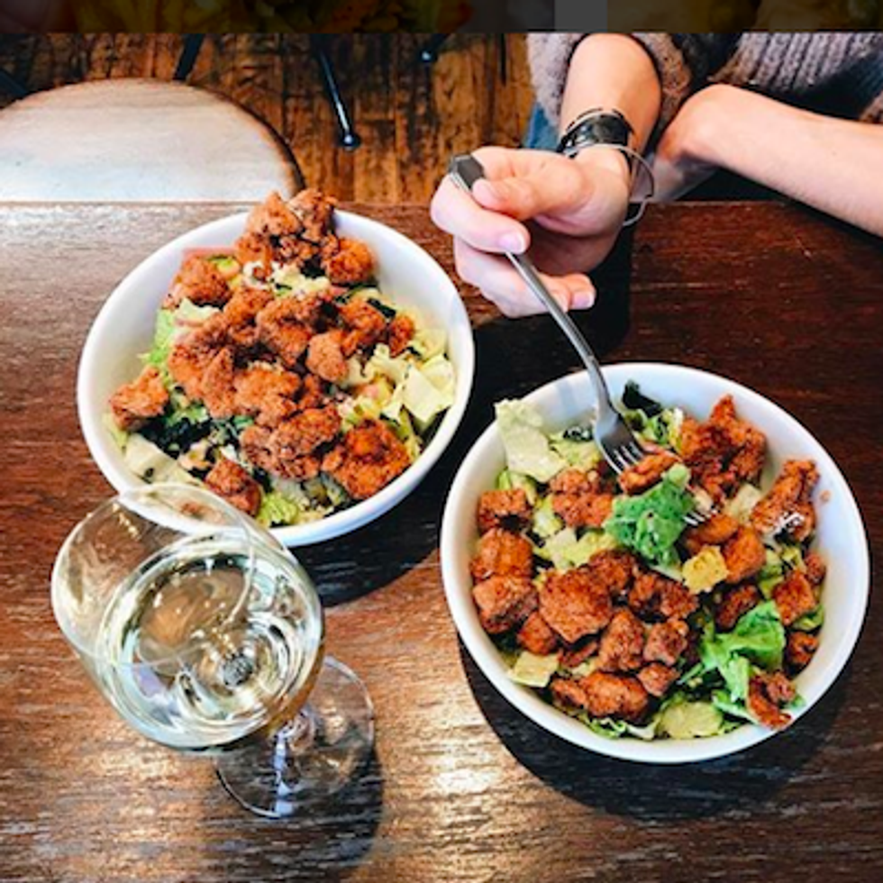 There's sooo much to eat in Uptown Oakland. Here are some of the best of the sit-down restaurants—for grab-and-go, sweets, and more, click here. // Tucked away inside The Gastropig, Abstract Table (2123 Franklin St.) is a multi-course dining experience that manages to mix the quality and innovation of an upscale prix fixe meal with the laid-back atmosphere of a friend's dinner party. A sort of "permanent pop-up," Abstract Table offers just two seatings (6pm and 8:30pm) every Friday and Saturday, with reservations for either a five- or seven-course meal only available on Resy ($50–70). // Itani Ramen (1736 Telegraph Ave.) serves the best of slurpable cuisine, with a seasonally changing menu that shows finesse and an intimate familiarity with Japanese food. // As the unofficial centerpiece of The Hive, Calavera (2337 Broadway) immediately beckons with exposed brick, soaring ceilings, an open kitchen, and a meticulously organized wall of spirits. Adventurous diners will get a kick out of duck confit tacos and guacamole topped with Oaxacan chapulines (grasshoppers). It's hard to go wrong with one of the bar's tequila and mezcal selections. // Hopscotch (1915 San Pablo Ave.) helped solidify Uptown Oakland as a dining destination, and still churns out one of the tastiest take-out options in the area: the to-go bucket of fried chicken. // Casual vibes make alaMar Kitchen and Bar (100 Grand Ave.) the perfect place for dollar oysters and drink specials on game day, girls' night out, and a relaxed evening over craft-your-own seafood boils or Cajun crawl packs with peel-and-eat shrimp and crab to feed a crowd. // Montreal-style bagels are now available in Uptown, with the second location of Beauty's Bagel Shop (1700 Franklin St.) serving wood-fired bagels topped with silky cream cheese and smoked salmon, sandwiching fried chicken, or alongside chicken scrapple (cornmeal laced with chicken and pan fried). // Shiba Ramen (1438 Broadway) lends itself to a satisfying yet casual experience with five menu standbys that vary by broth (clear, spicy, soymilk), and sides including Nagoya-style fried chicken wings and gyoza. // The Oaxacan-infused Agave Uptown (2135 Franklin St.) features a colorful folk art mural, authentic renditions of dishes such as molcajete and prawns diabla, and an impressive array of mezcals. // One of the first restaurants to recognize Uptown's potential, Flora (1900 Telegraph Ave.) capitalizes on its Art Deco exterior and proximity to the Fox to serve elevated seasonal dishes and cocktails // Caribbean flavors collide at Kingston 11 (2270 Telegraph Ave.), and weekends bring a lively crowd for island-inspired libations and classic roots and reggae music. // At Dosa by Dosa (2301 Broadway), enjoy lunch and dinner, or order both alcoholic and non-alcoholic cocktails and chais from the all-day bar. Street food–inspired favorites include the butter chicken street wrap, the masala potato dosa, and idli fries.