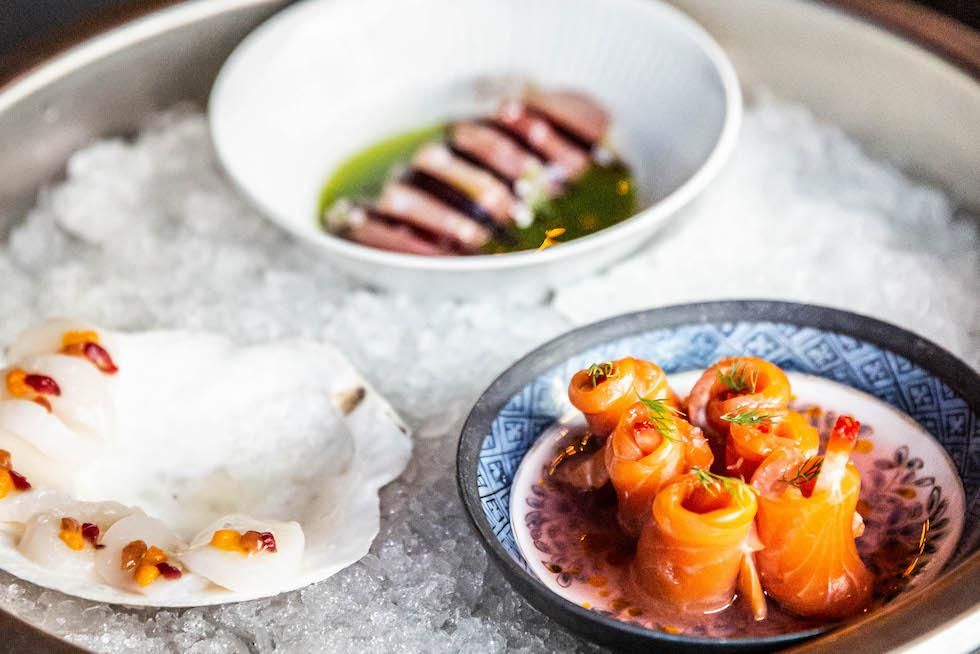 Hand-written name cards on each table direct diners to their seats just like they did in Hi Felicia's dinner club days and, as soon as everyone is comfortably seated, the first courses arrive in quick succession: tartly refreshing beet-and-strawberry gazpacho, raw scallops dressed in salty plum and habanero, salmon crudo with dill, and a piquant madai aguachile.