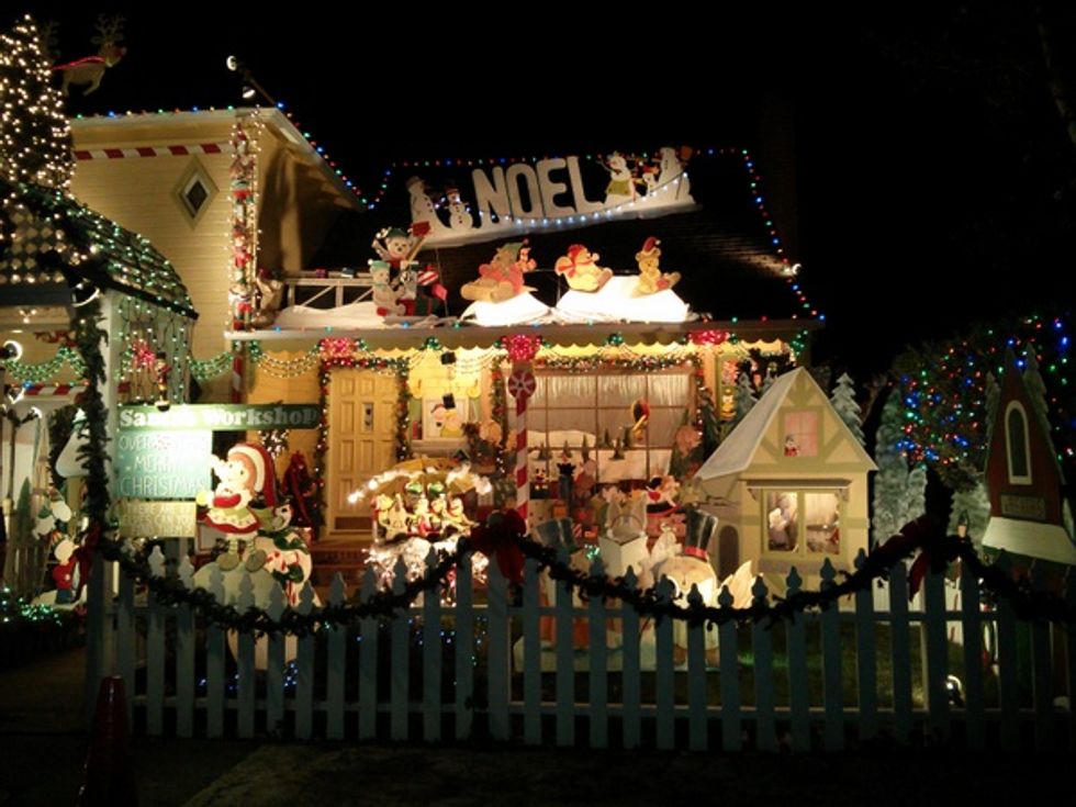 If this house doesn’t WOW you, nothing will. Established in 1994 by Scott Weaver, his love for making holiday memories has caught on with his neighbors and lead to an incredibly festive court. The set up takes four plus weeks. All cutouts are handmade by Weaver, which should come as no surprise. He’s the guy who created Rolling Through the Bay, the abstract toothpick sculpture of San Francisco. Certain elements have their set locations year after year, but he’s constantly inspired and adding new works to collection.
