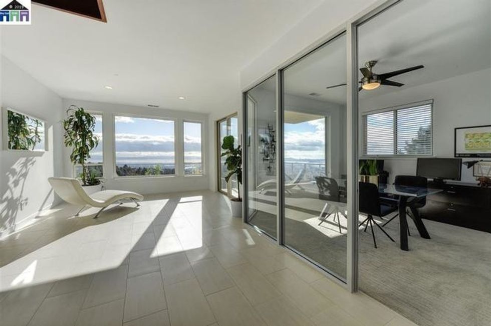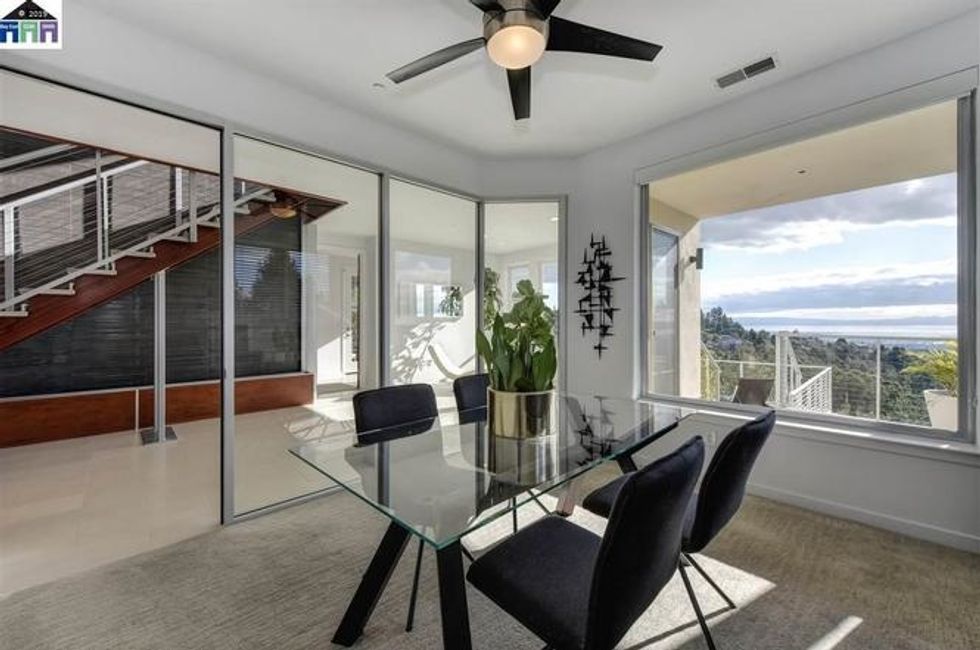 The bucolic boulevard borders Redwood Regional Park with its many wooded trails and easy access to the Chabot Space and Science Center. in other words, to live here would be a dream, even for jaded San Franciscans who've sworn they'd never move to Oakland. This three-level house, with panoramas from Lake Merritt to the Golden Gate Bridge, doubles down on the fantasy.