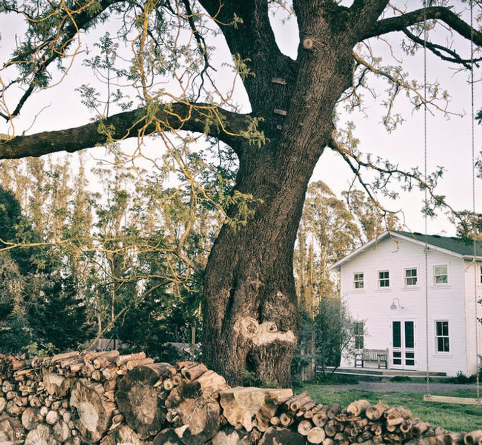 The entire family gravitates to the huge walnut tree in the yard. "It's kind of a touchstone," says Pattee. "It's poetic and statuesque." The house, with its graceful gable structure, is visible in the background. "It needed a lot of love when we first saw it," says Pattee. "The second story was accessible only by a steep ladder."