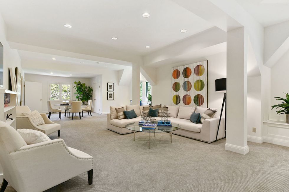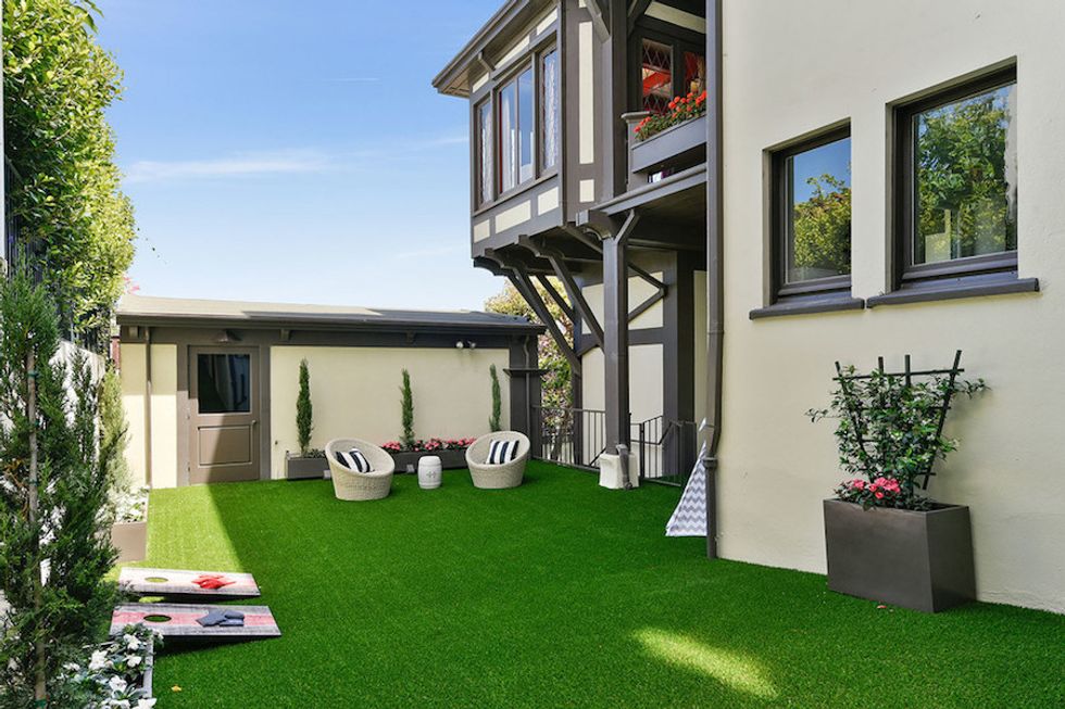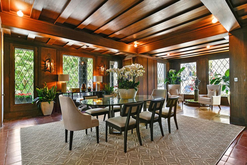 Amongst the clean and classy manors in the highly coveted neighborhood, this quirky Tudor has the trappings of castles of old, with a great hall and a living room with 20-foot high ceilings and lights hanging from gargoyles (yes, you read that right). Don't forget the fountain in the dining room, oh, and velvet handrails on the majestic staircase.